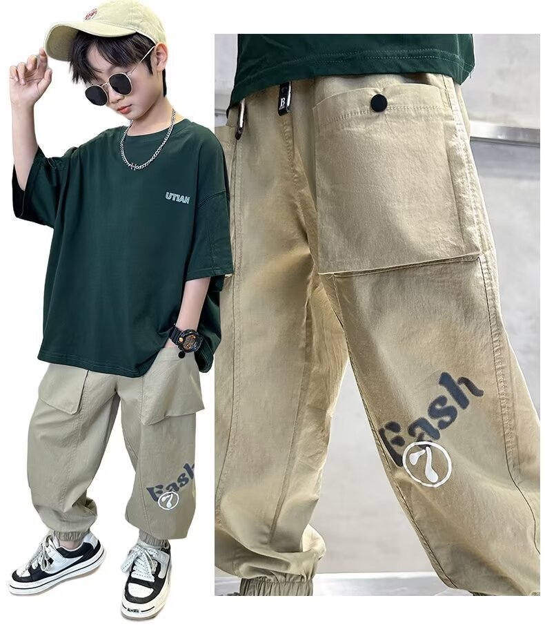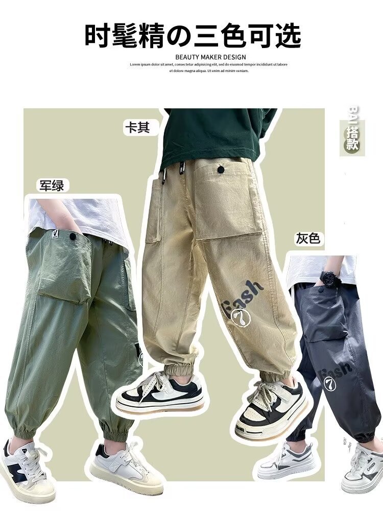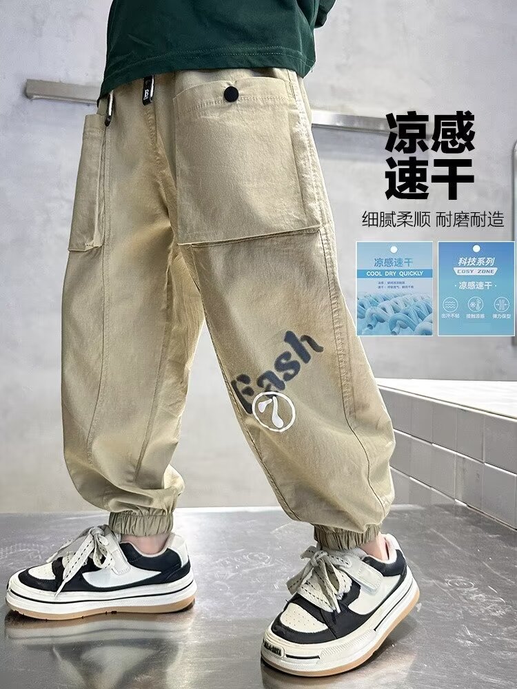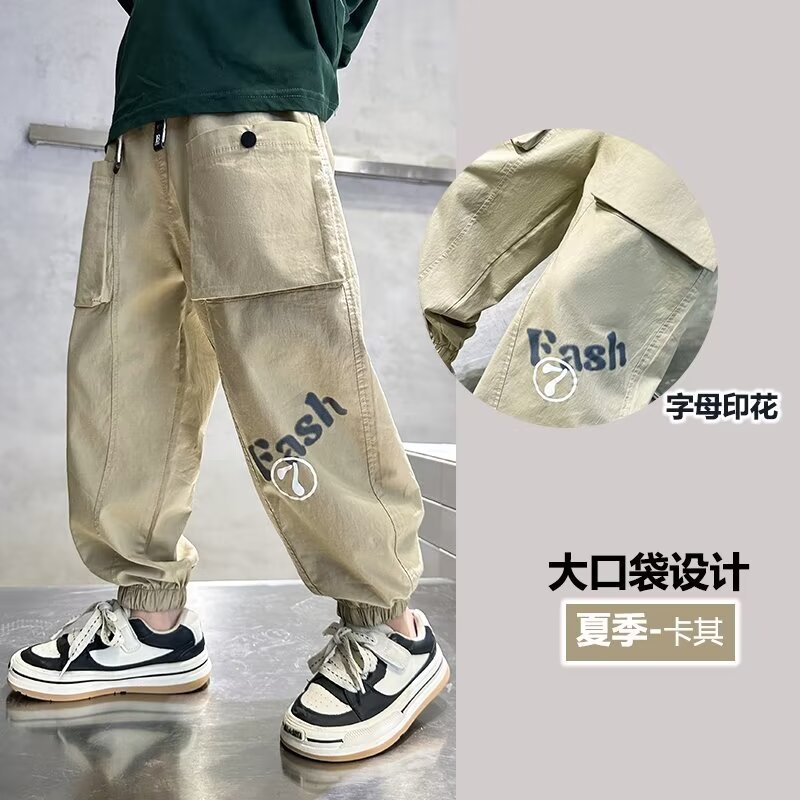 童装纯棉工装裤男童潮流夏季薄款舒适宽松休闲裤速干防蚊裤潮