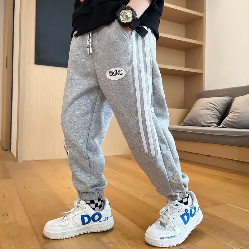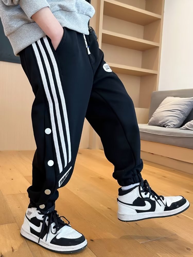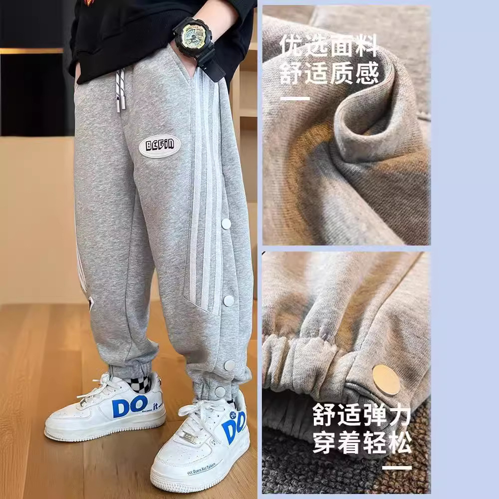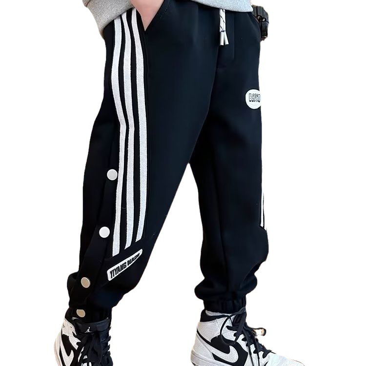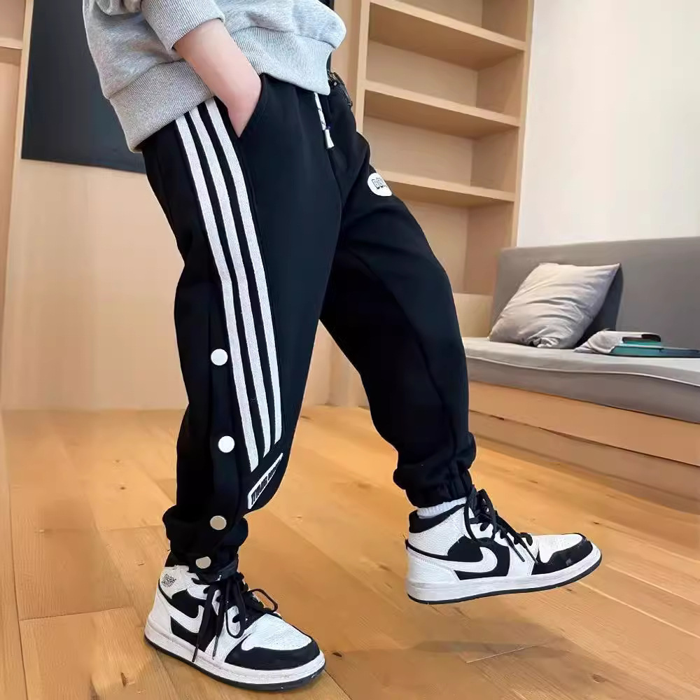 童装工装裤侧条纹排扣束脚运动裤子男童宽松港风潮牌高街休闲卫裤