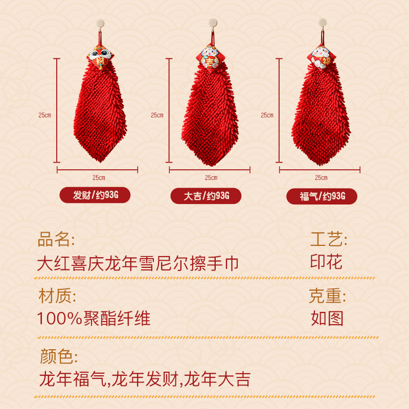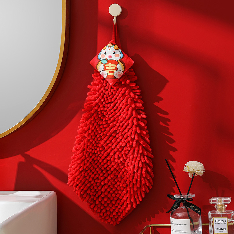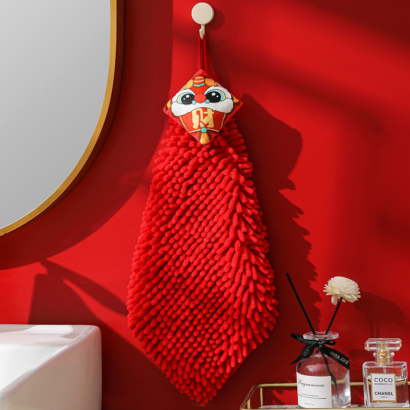 龙年新款雪尼尔擦手巾大红喜庆伴手礼毛巾厨房浴室挂式吸水巾跨境
