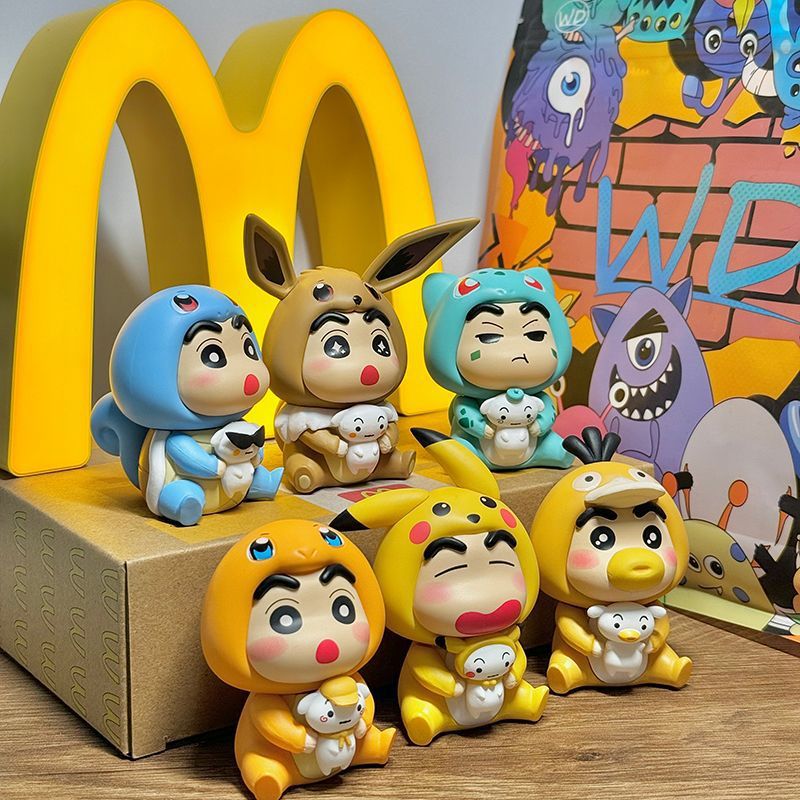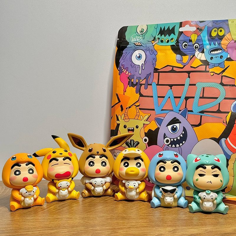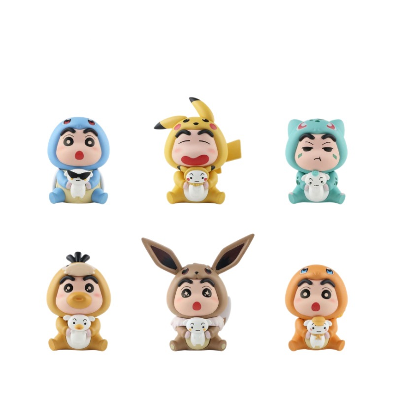 蜡笔小新cos皮卡丘变装系列盲盒手办卡通潮玩公仔桌面小手办礼物