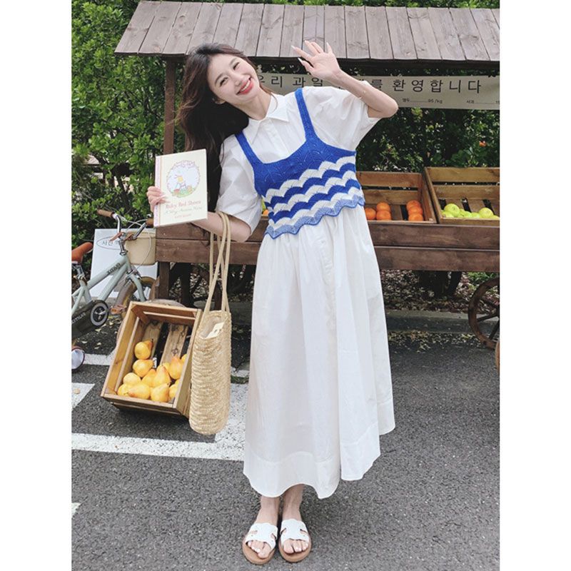 针织吊带衬衫裙两件套女夏季新款韩系学院风甜美减龄套装长裙