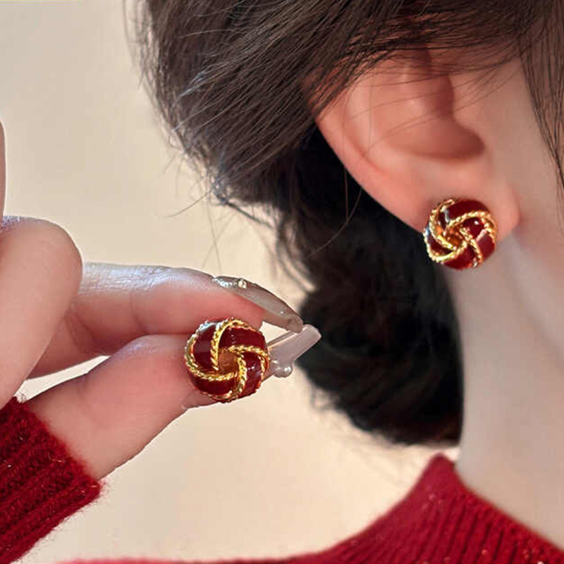 银针滴油圆形交叉纹路耳钉轻奢安可拉红耳环高级感独特精致耳饰女