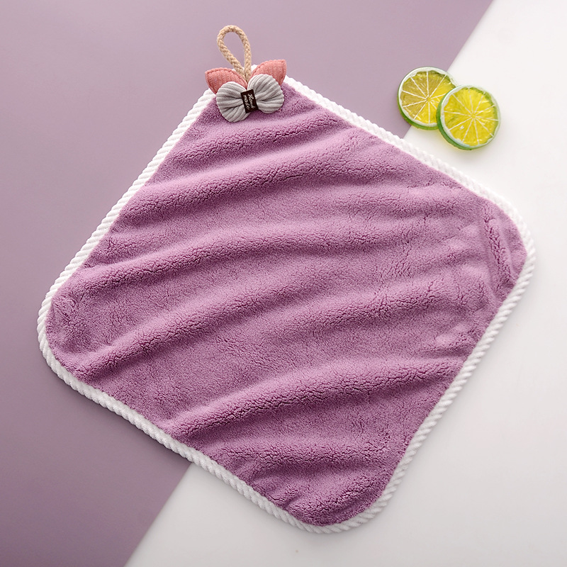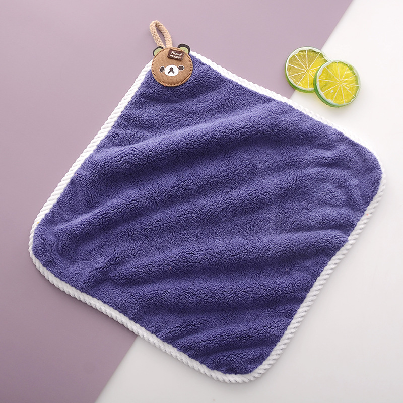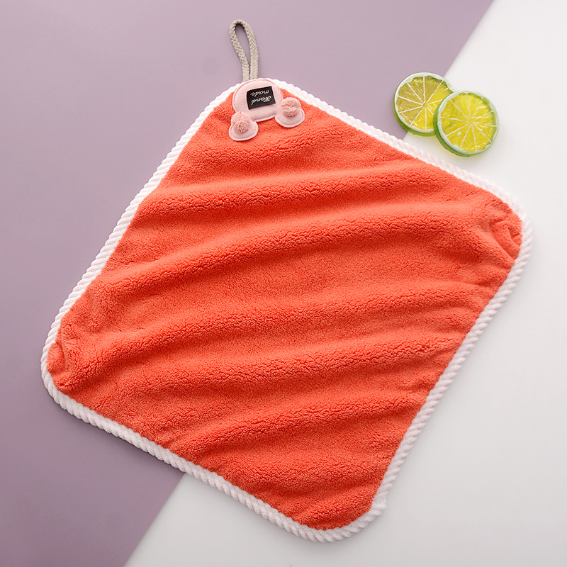 可挂式珊瑚绒加厚吸水不易掉毛厨房擦手方巾挂巾时尚小毛巾