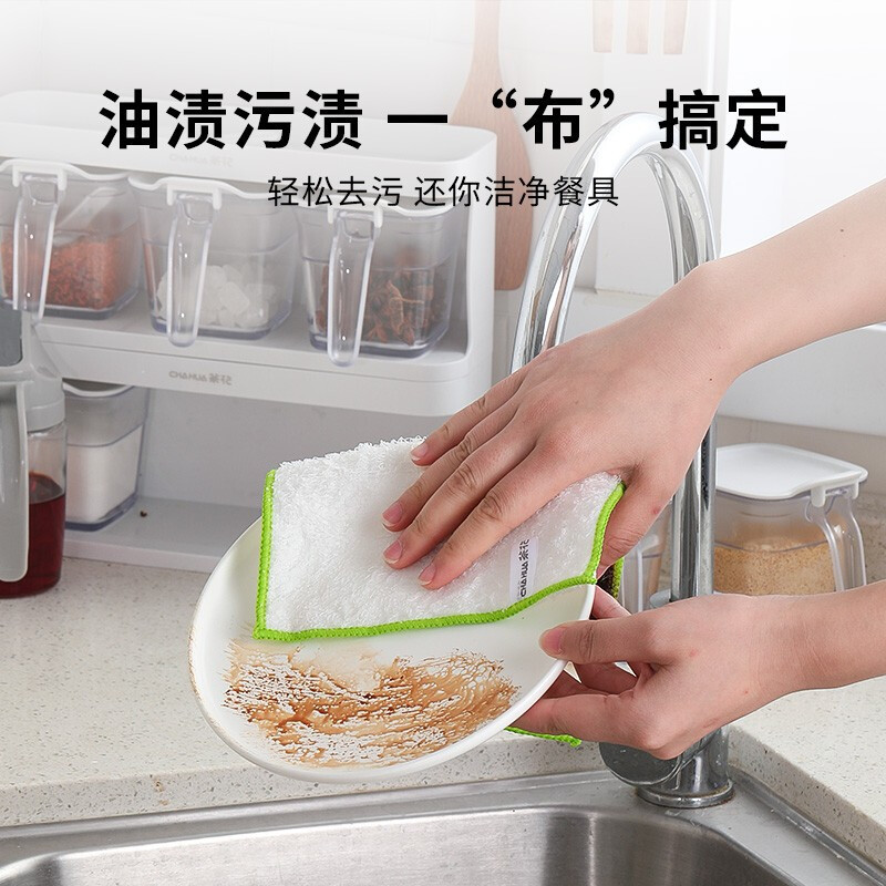 茶花竹纤维清洁抹布厨房灶台麻布洗碗巾吸水去油小方巾百洁布