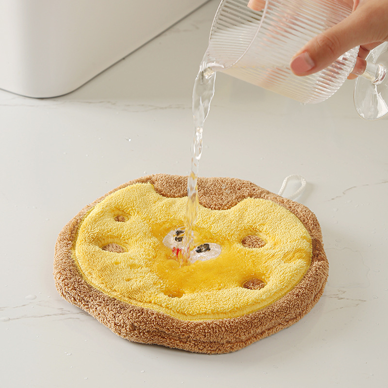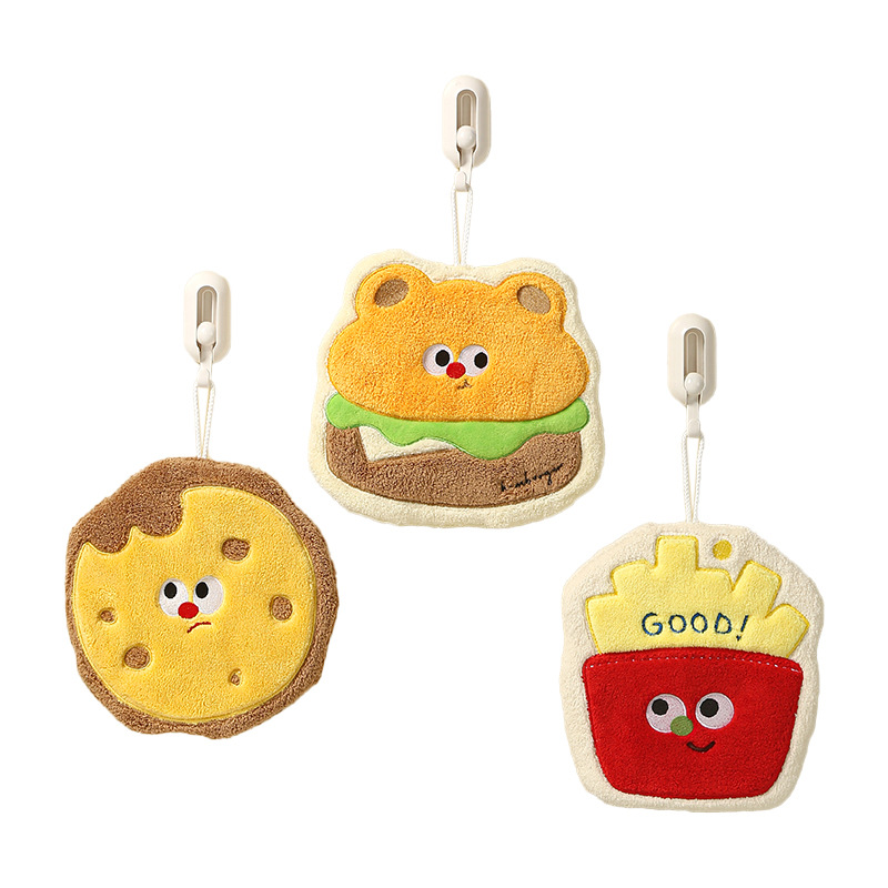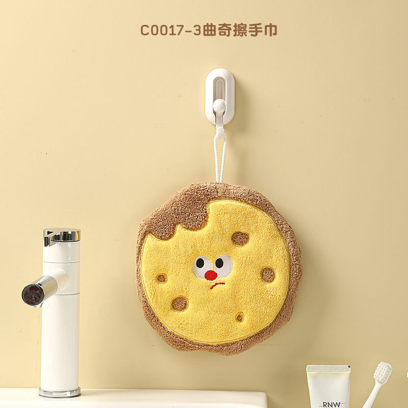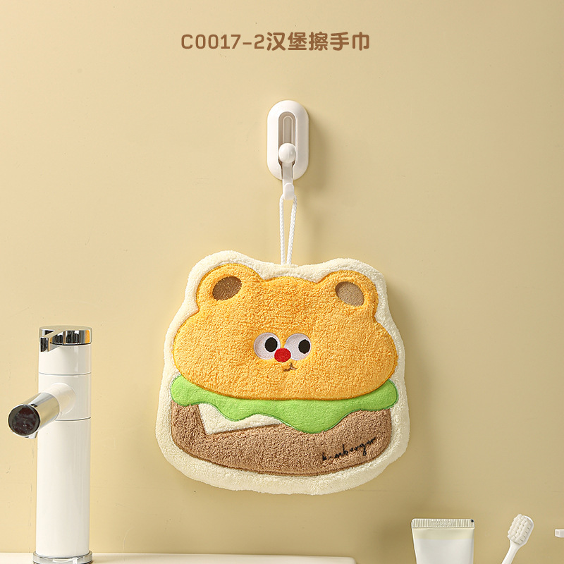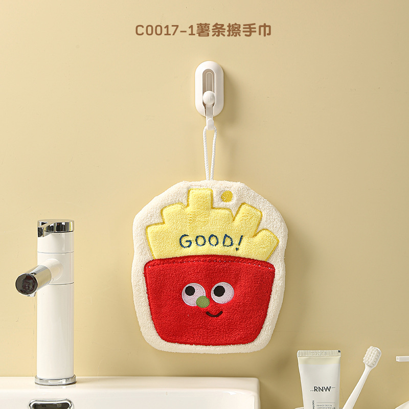 卡通烘焙厨房挂式擦手巾吸水速干加厚儿童珊瑚绒柔软可爱食物毛巾