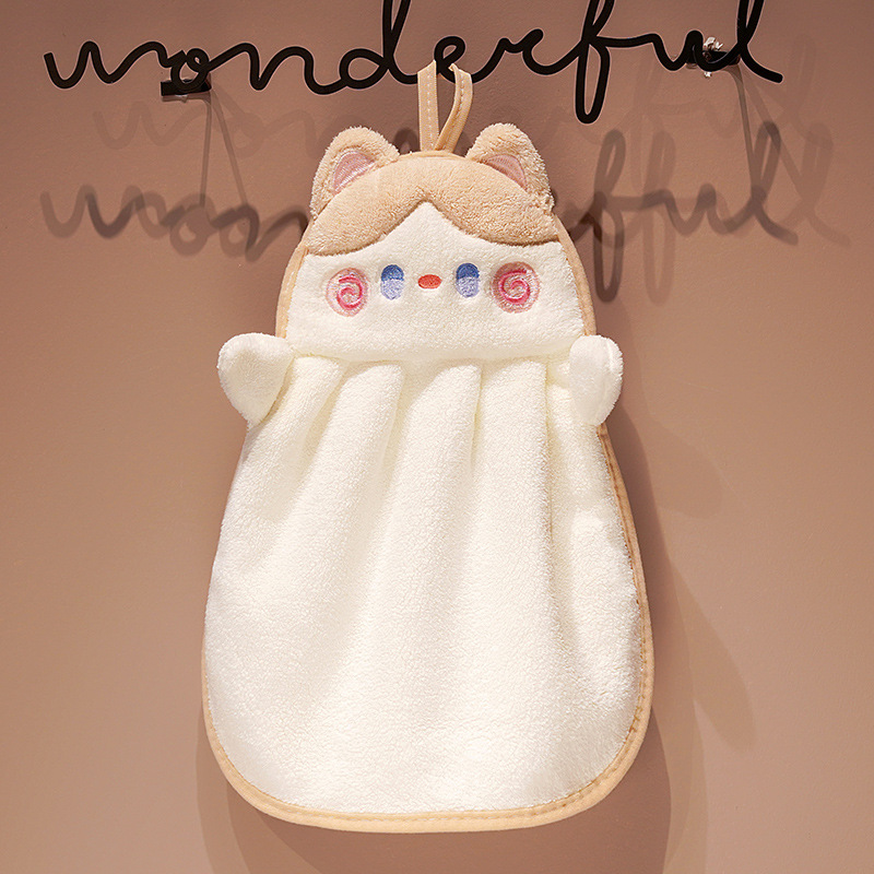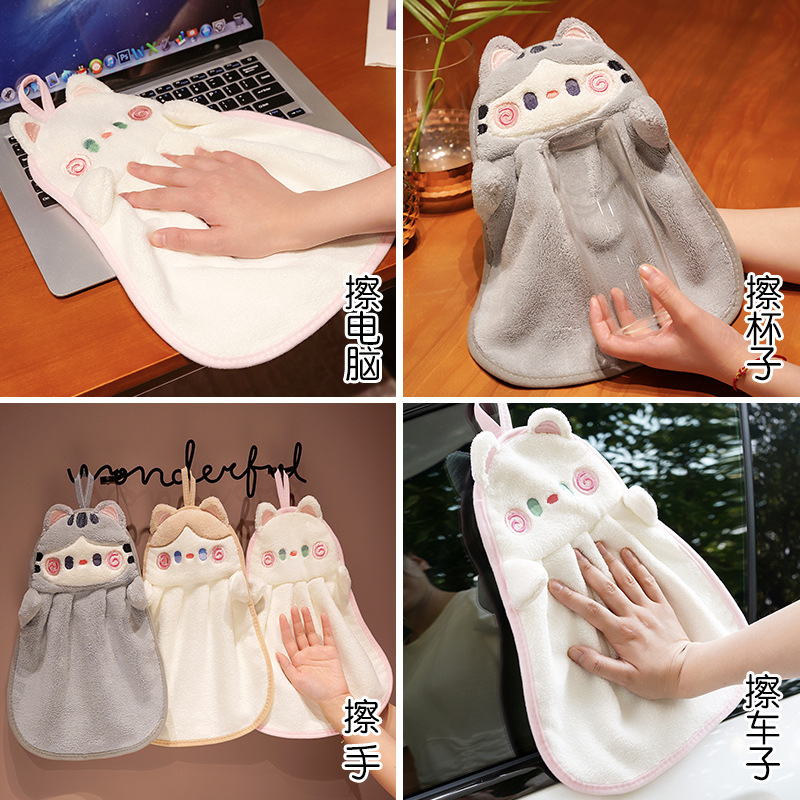 新款卡通抱抱猫擦手巾可挂式柔软吸水毛巾 家用厨房可爱儿童手巾