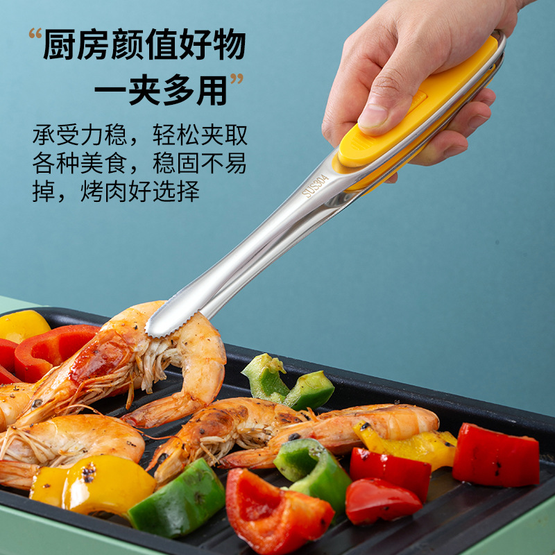 家用304不锈钢韩式烤肉夹子自动回弹烧烤食品夹牛排韩国料理小夹