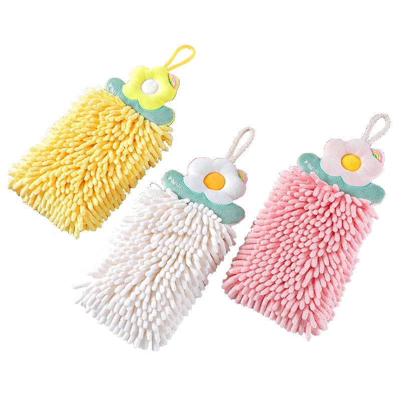 雪尼尔挂式花朵擦手巾吸水速干加厚双层可挂擦手布可爱伴手礼毛巾