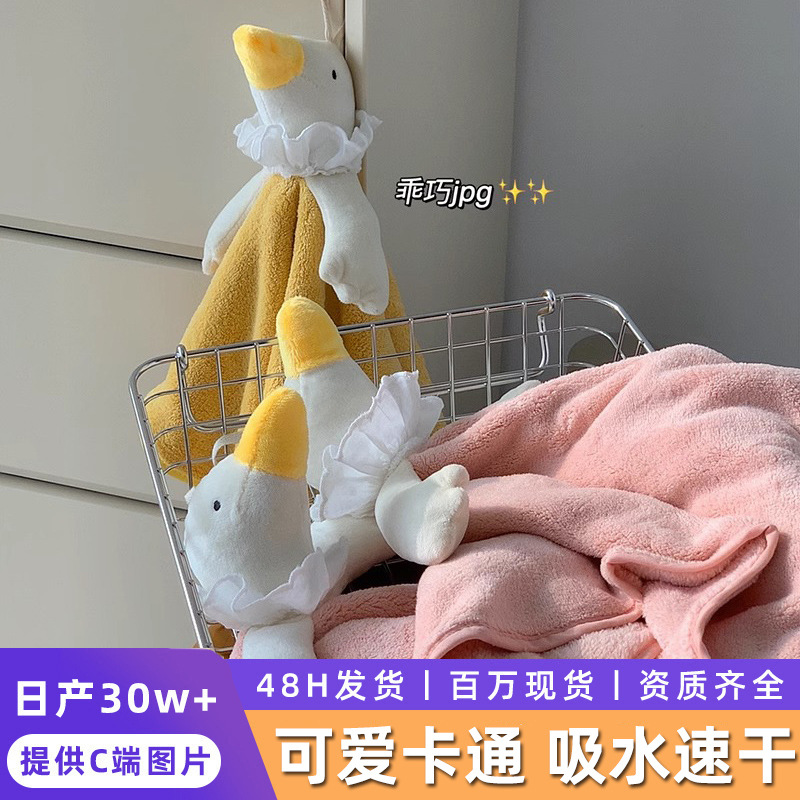 可爱卡通擦手巾可挂式抹手布厨房厕所珊瑚绒擦手布吸水速干可挂式