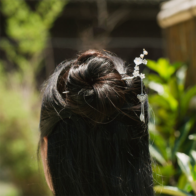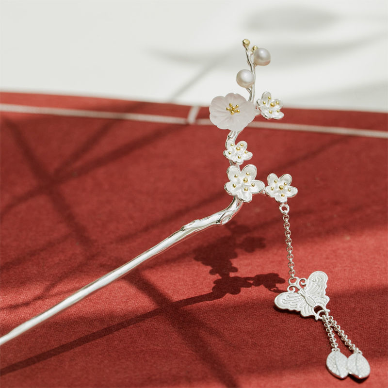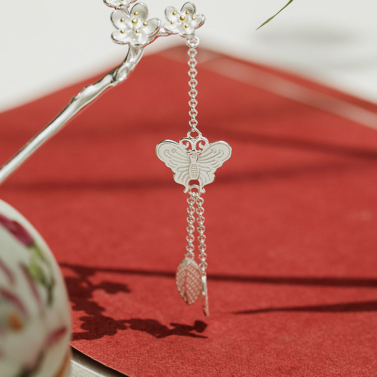 新小梅花流苏发簪女民族风纯银古风中式古典汉服发钗头饰簪子