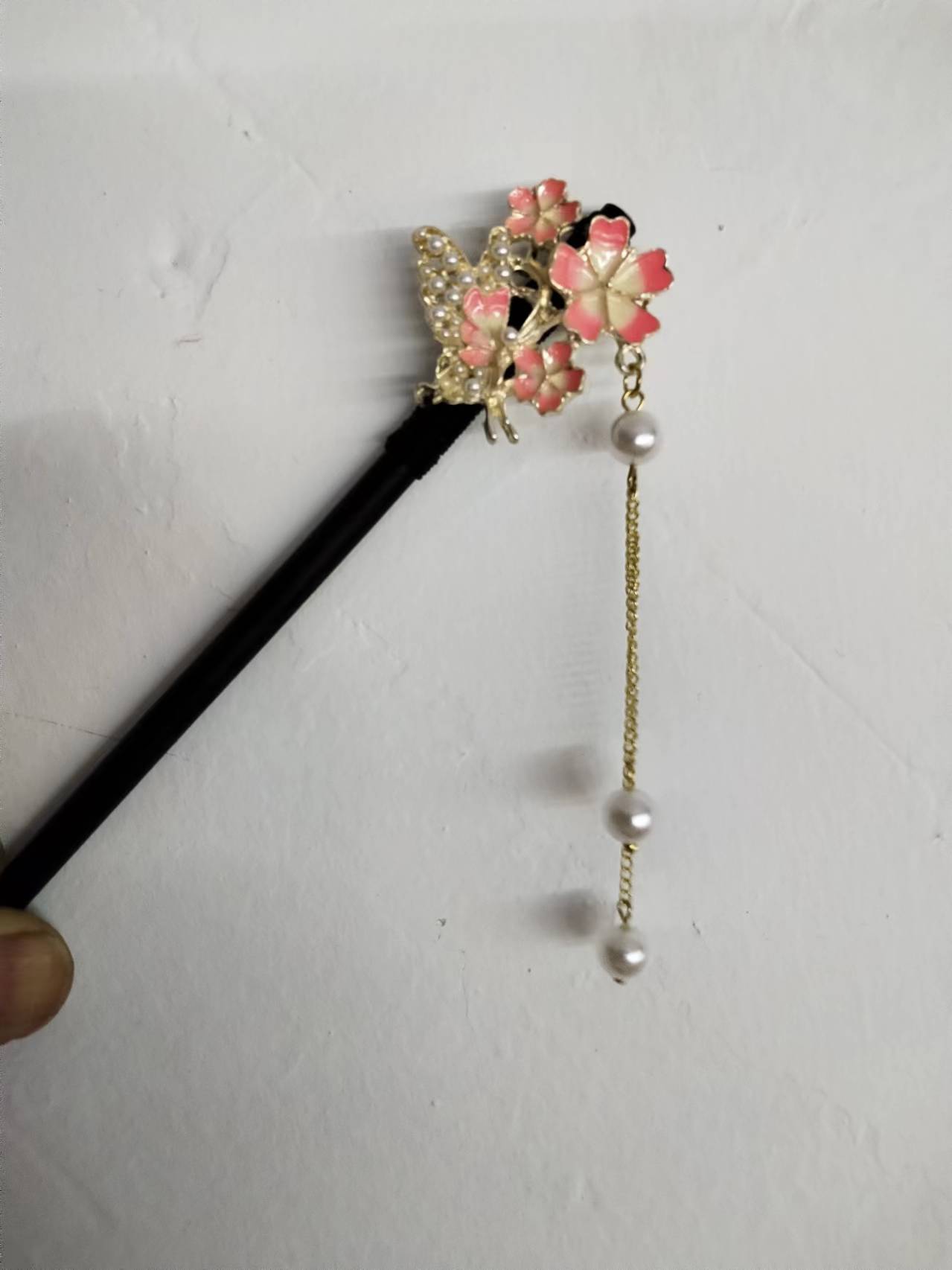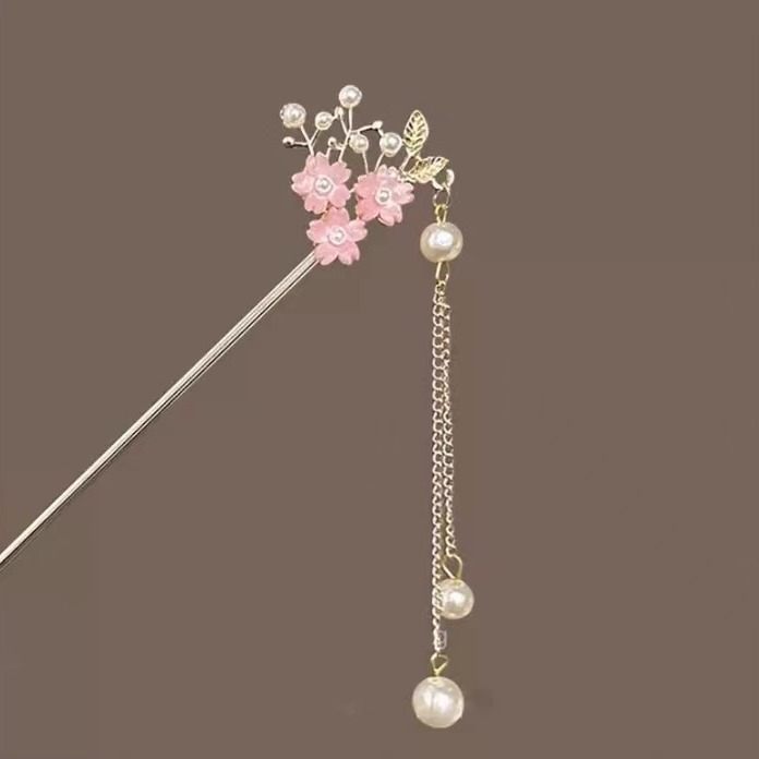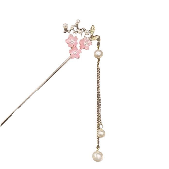 粉色桃花流苏古风发簪简约现代盘发步摇高级感簪子