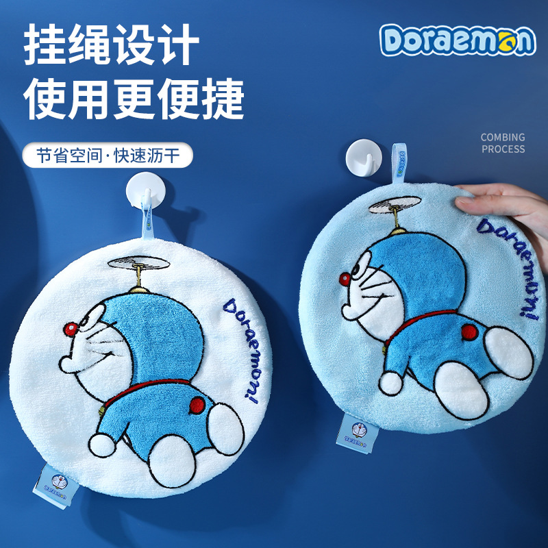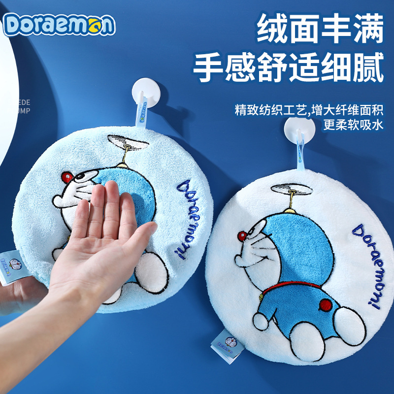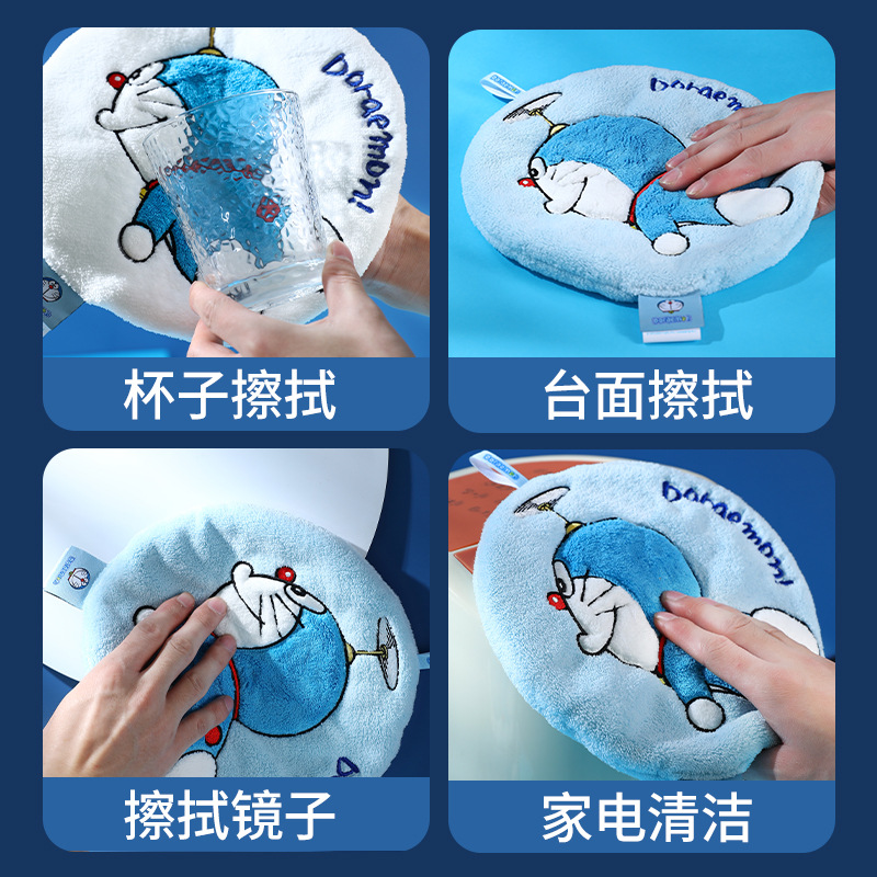 哆啦a梦珊瑚绒擦手巾可挂式厨房毛巾擦手卫生间擦手布吸水巾加厚