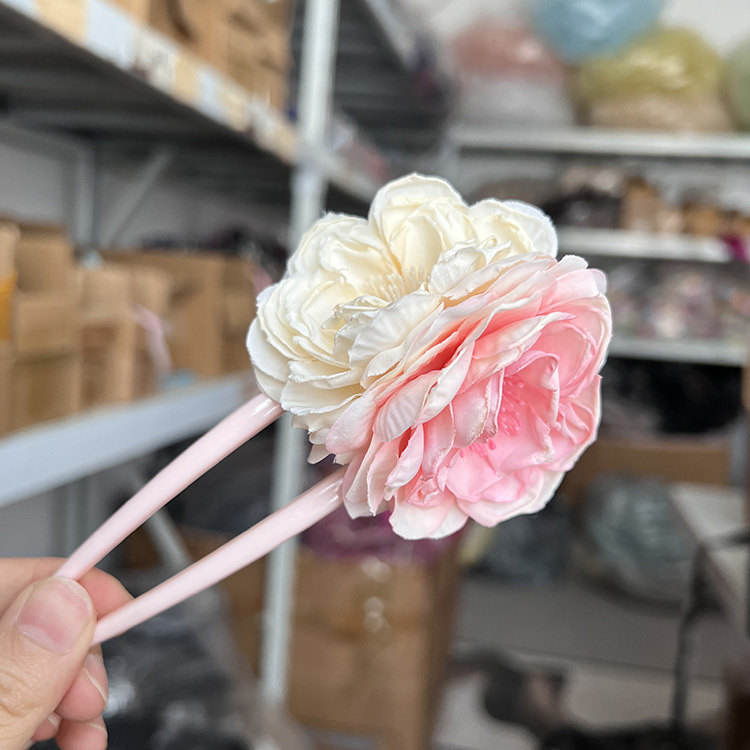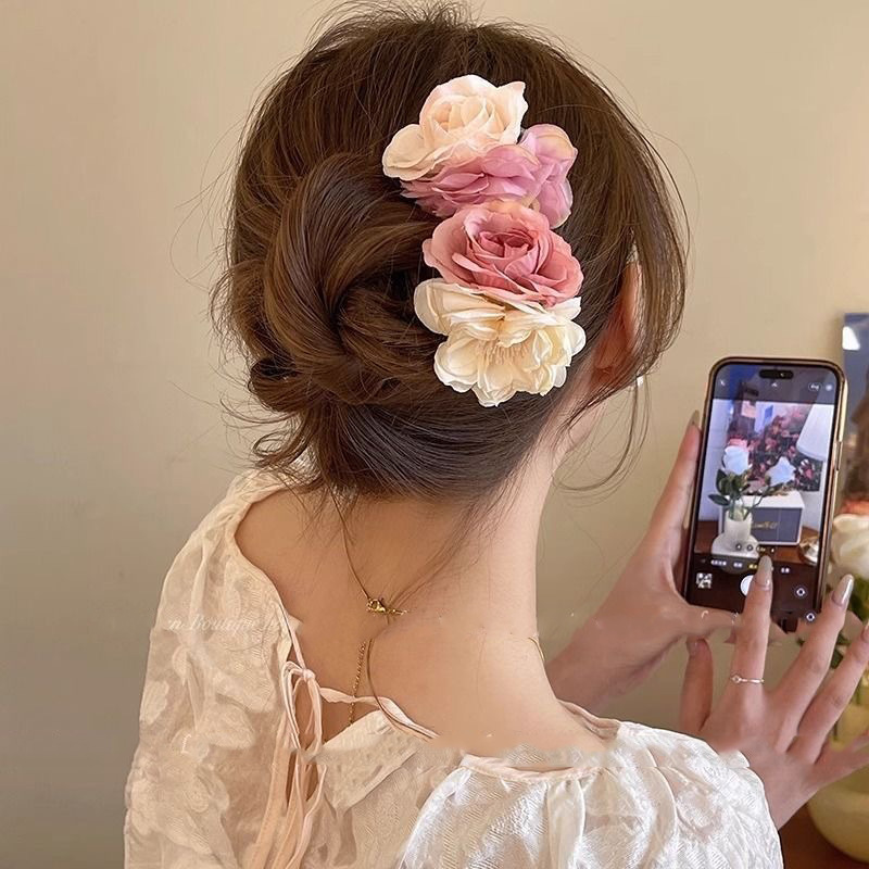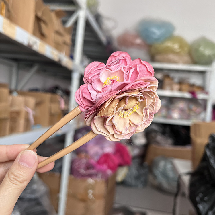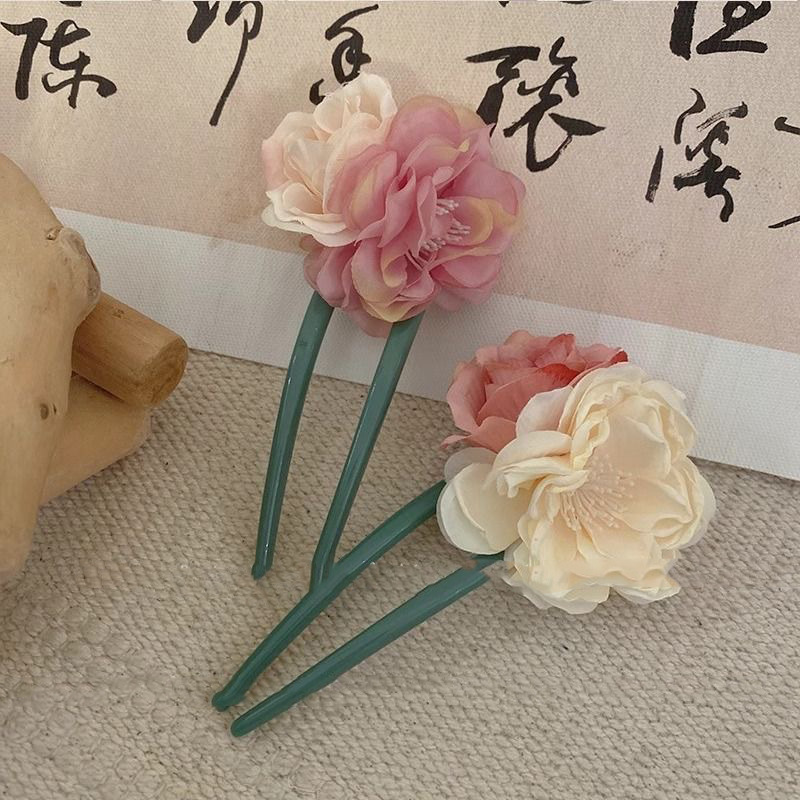 超仙粉色玫瑰花簪子高级感新中式古风U型发簪