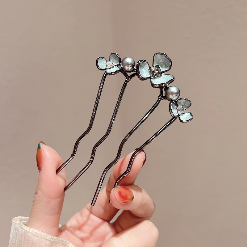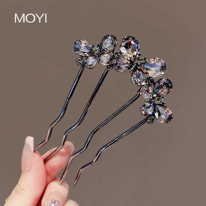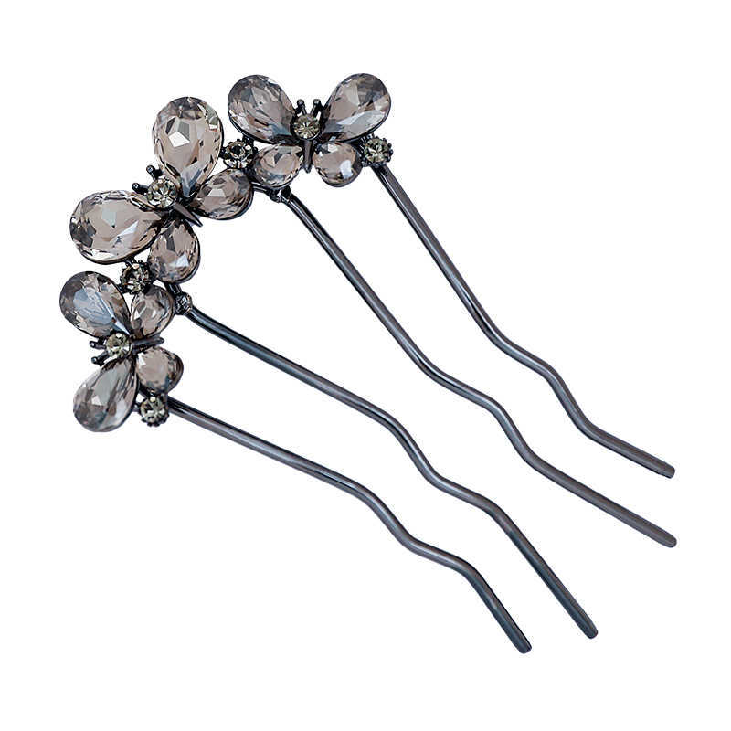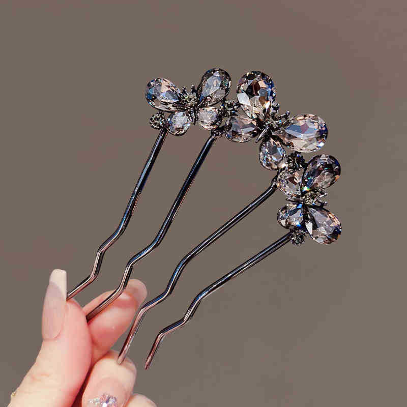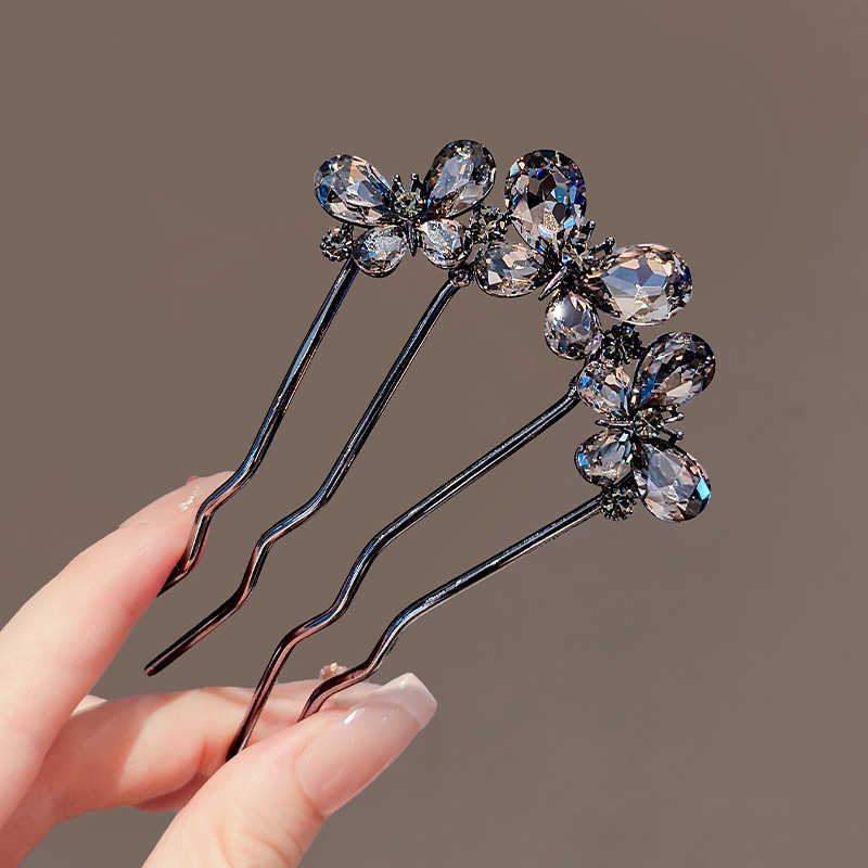 黑色水钻三蝴蝶U型发簪