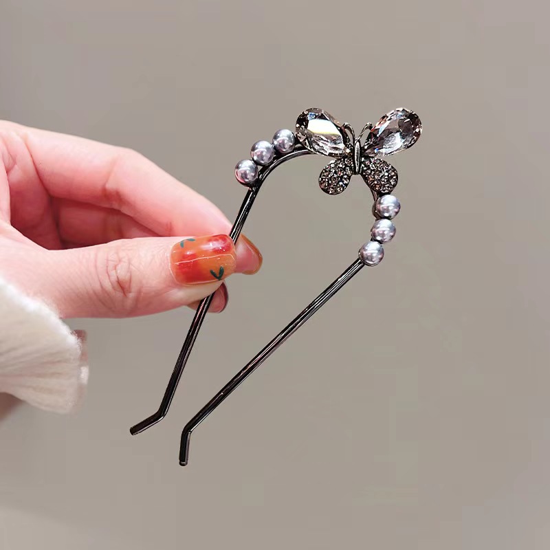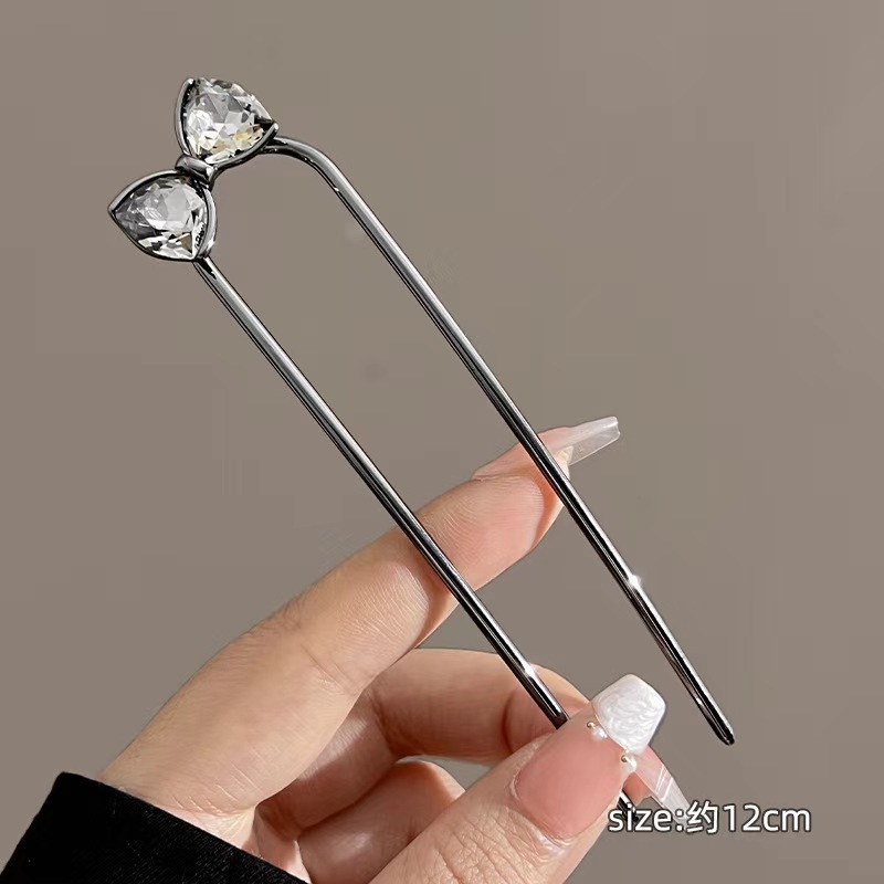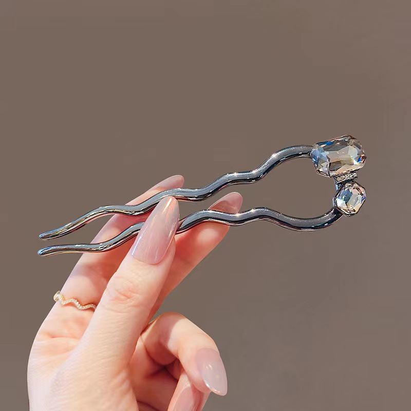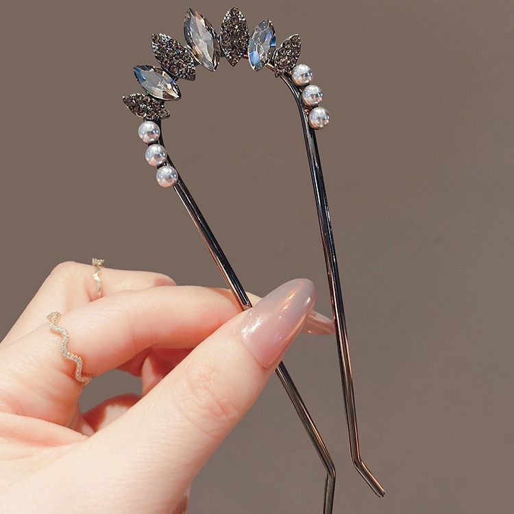 发夹女叶子水晶气质发簪高级感金属发钗盘发神器简约簪子插梳