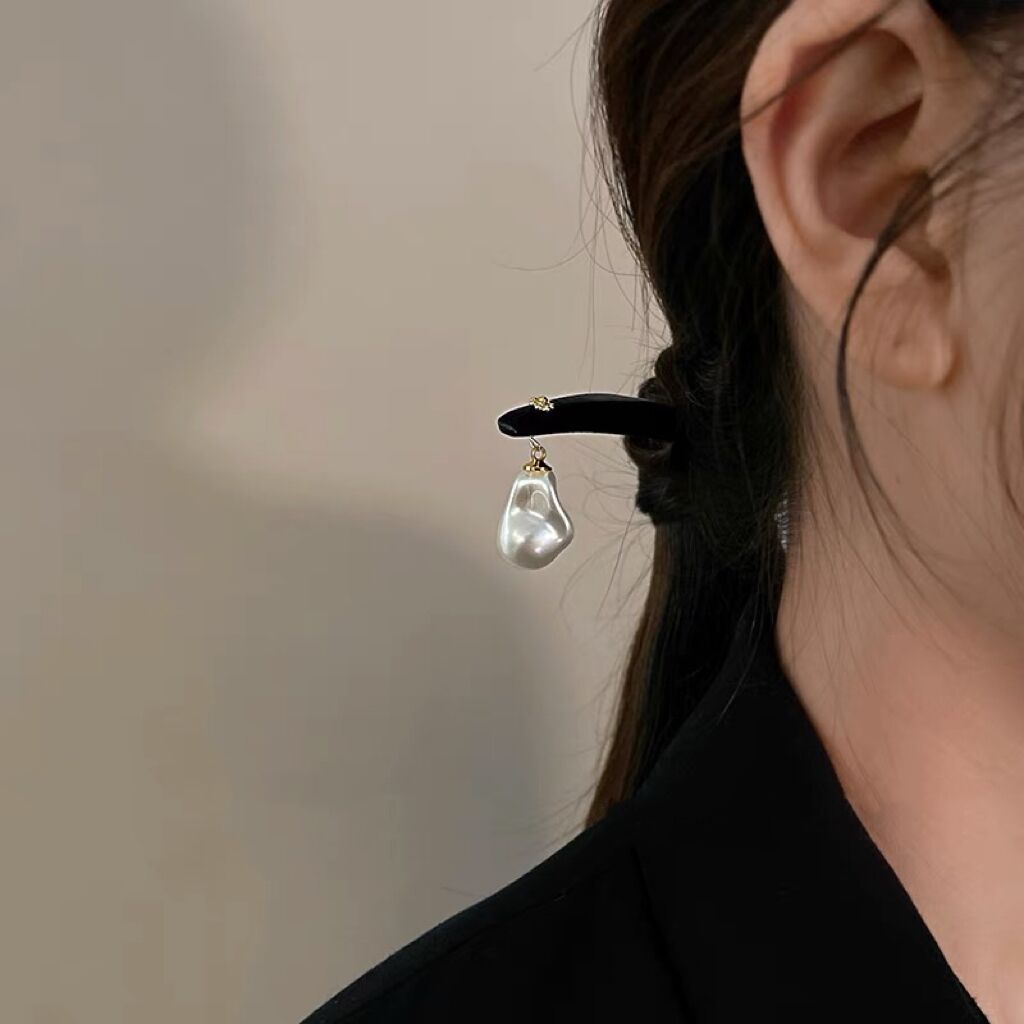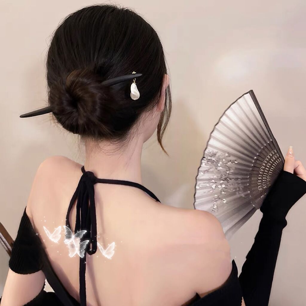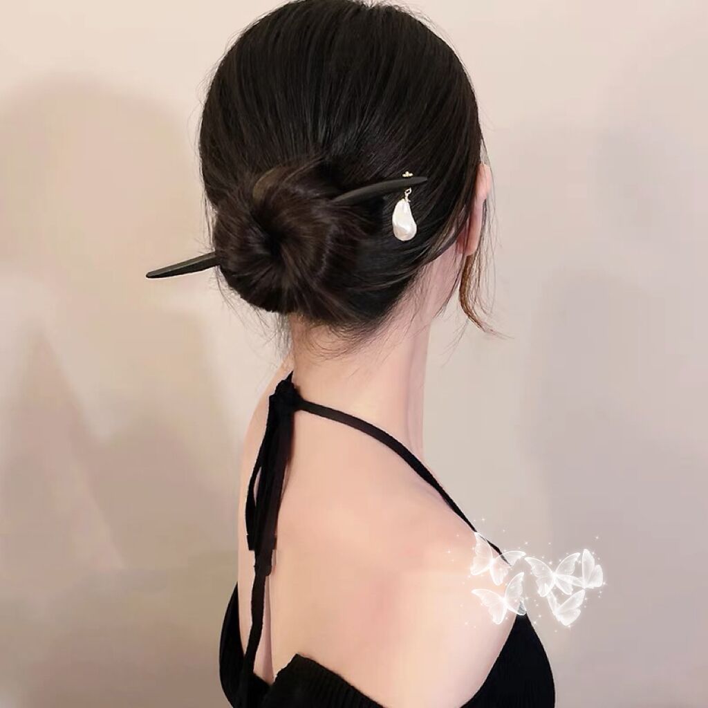 异形珍珠不规则檀木发簪盘发中国风高级感簪子古风