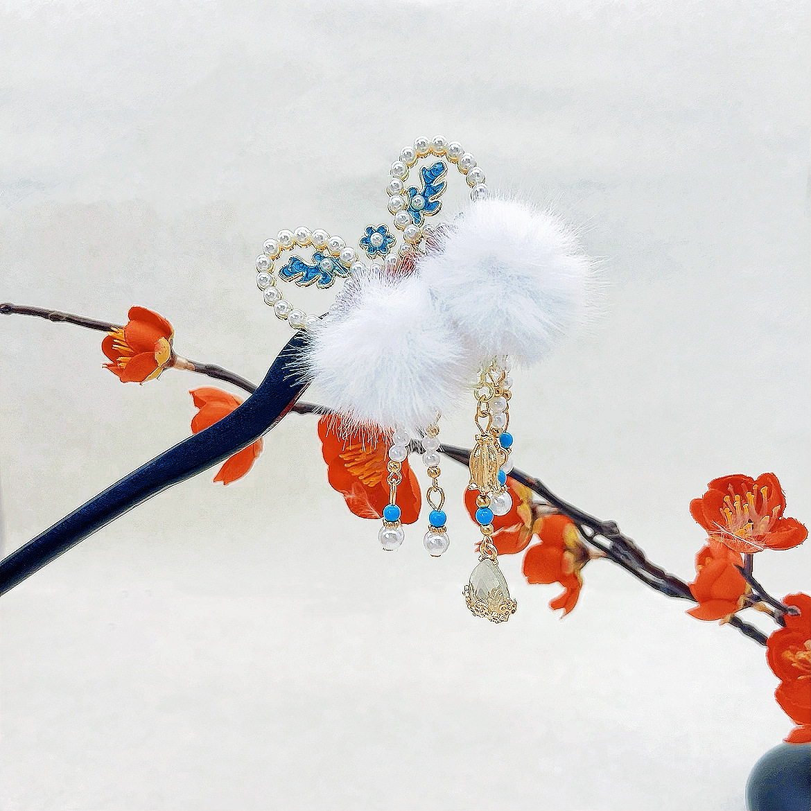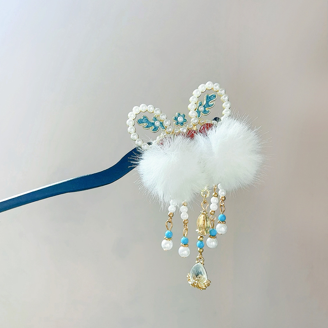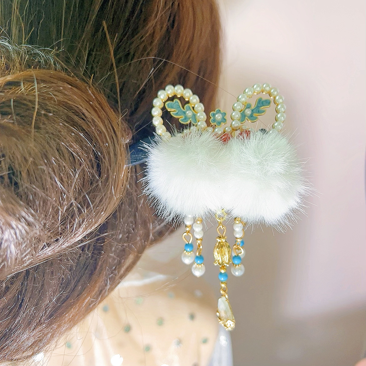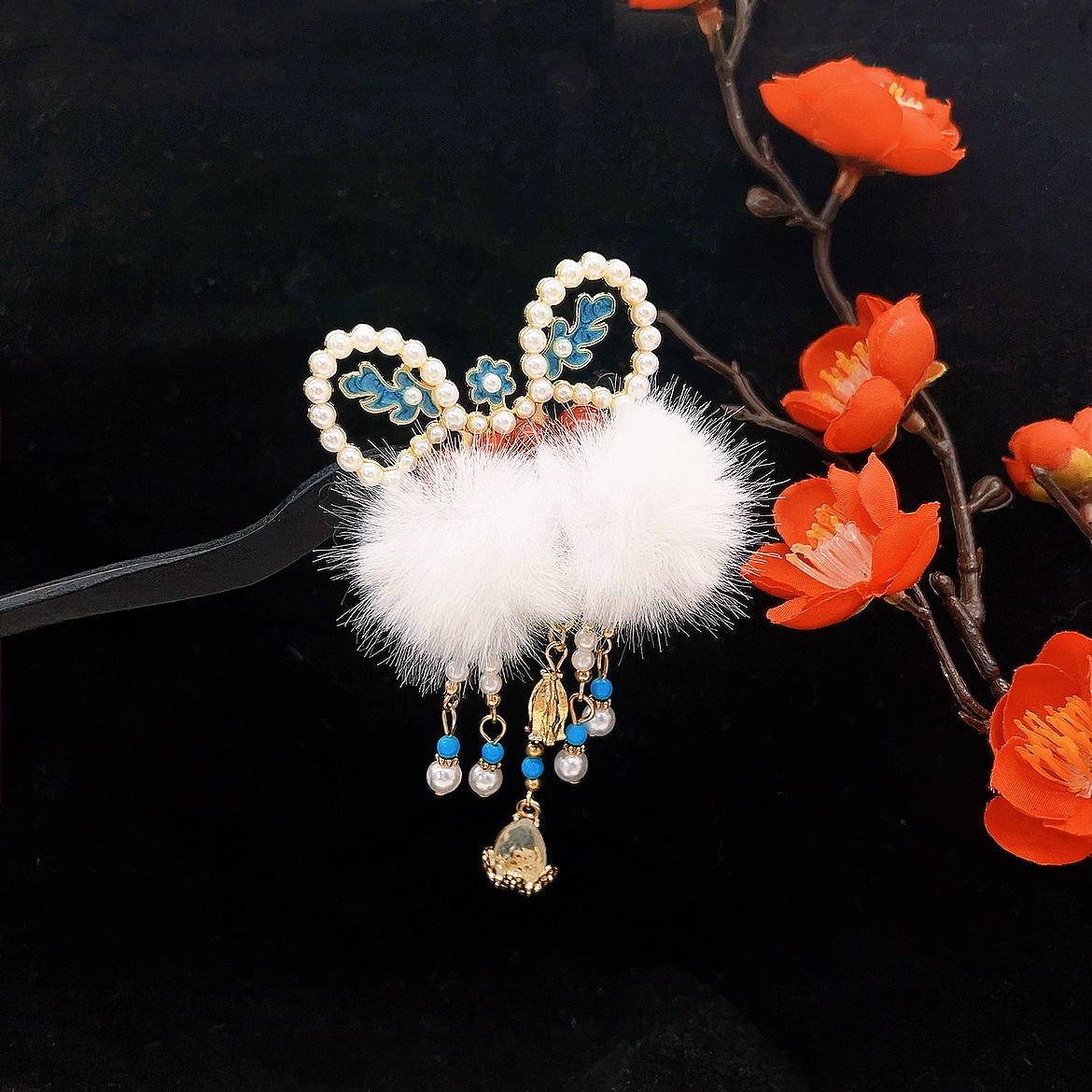 毛绒木簪高级感流苏步摇发簪簪子新中式古风喜庆挽发发钗