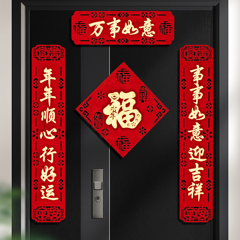 2025新款立体对联正红绒布七字立体春联蛇年春节福字门贴