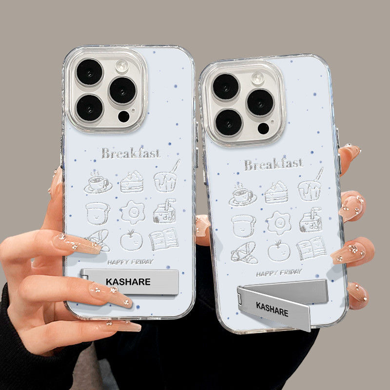 食物线条适用苹果15PROMAX手机壳iPhone14简约13带支架12硬壳大孔