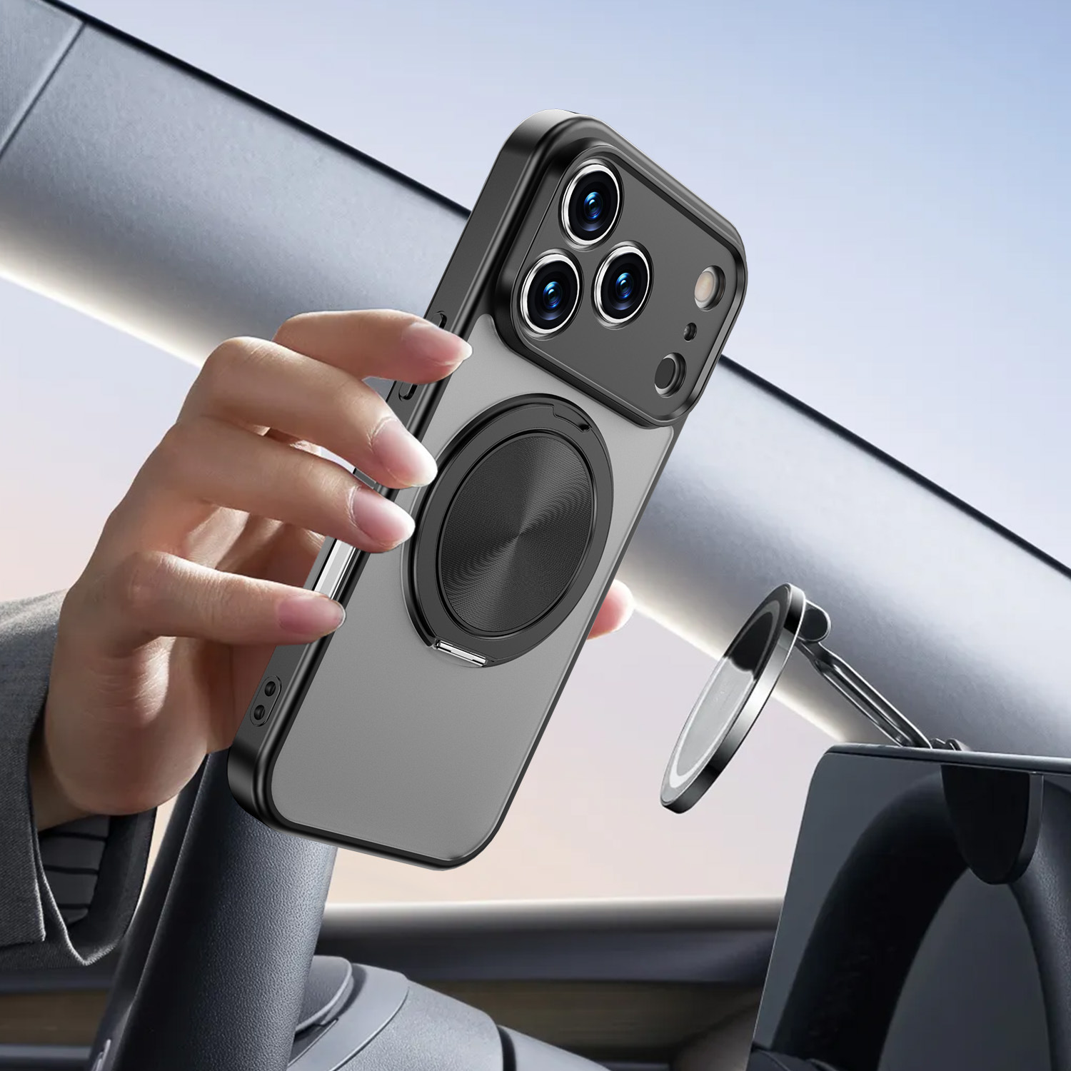 适用iPhone17手机壳肤感360旋转支架苹果17ProMax磁吸支点保护套