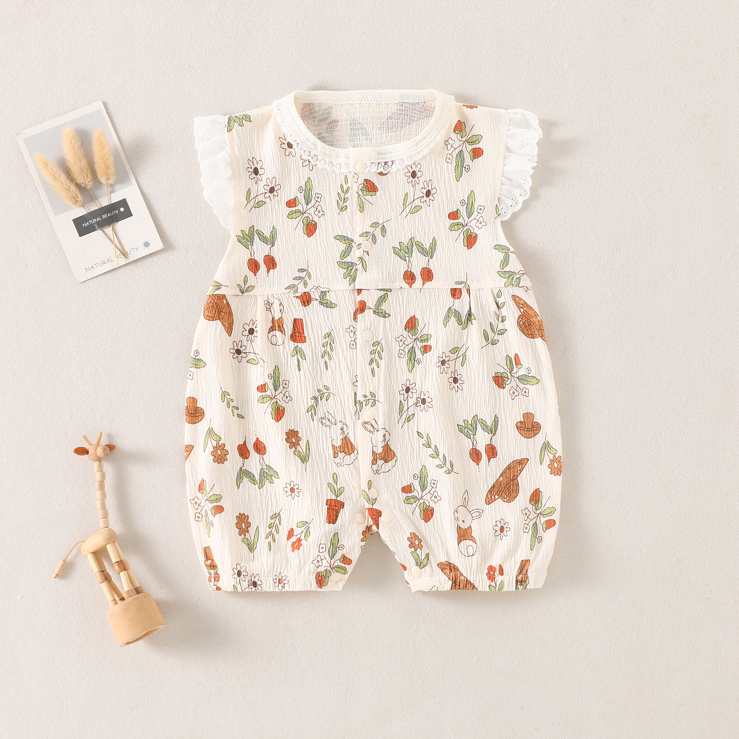 女宝宝连体衣夏装短袖爬爬服小碎花韩版衣服幼儿类薄款婴儿哈衣