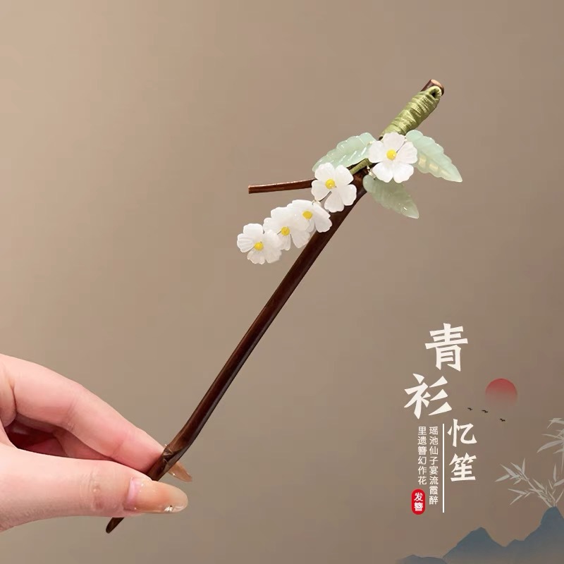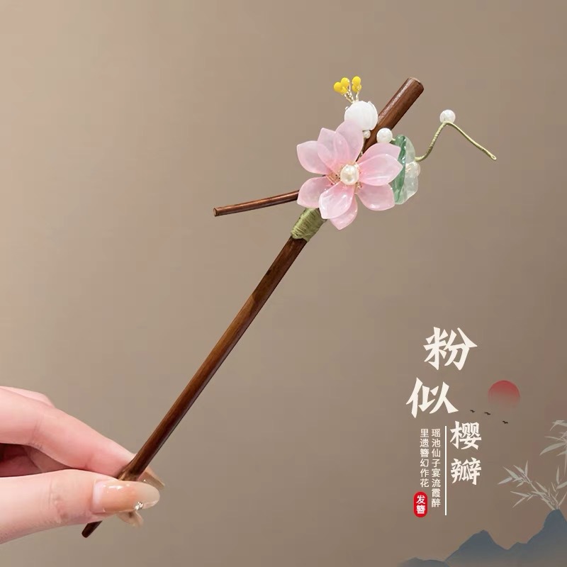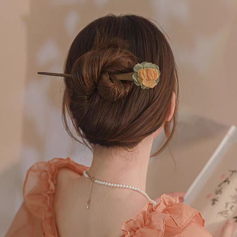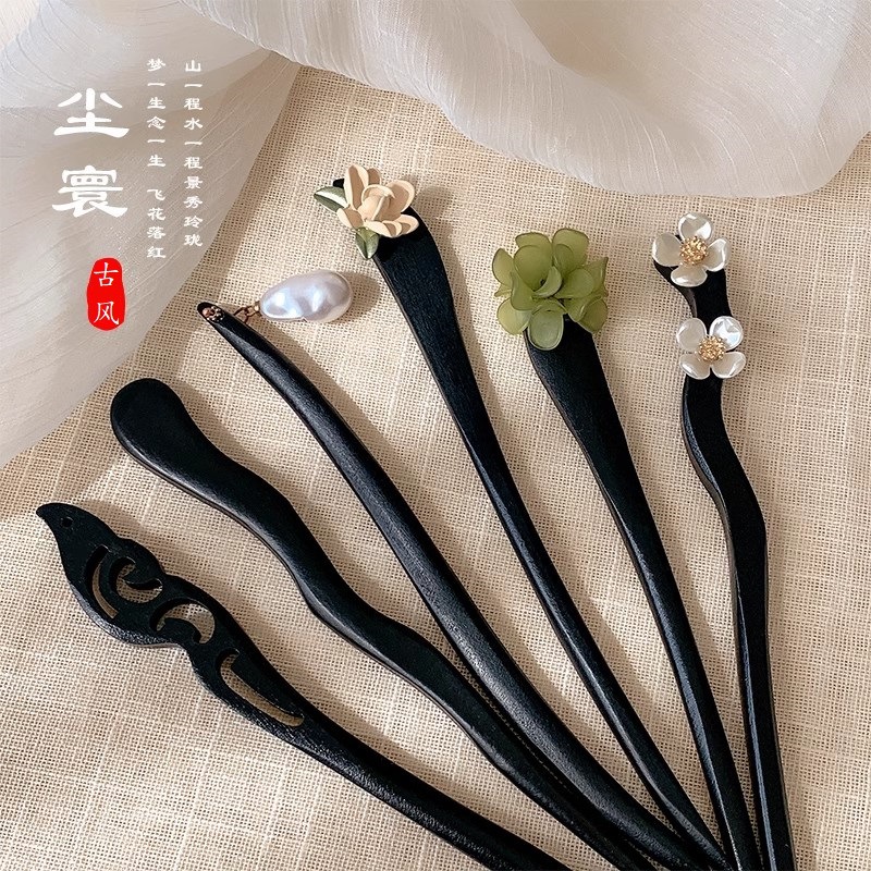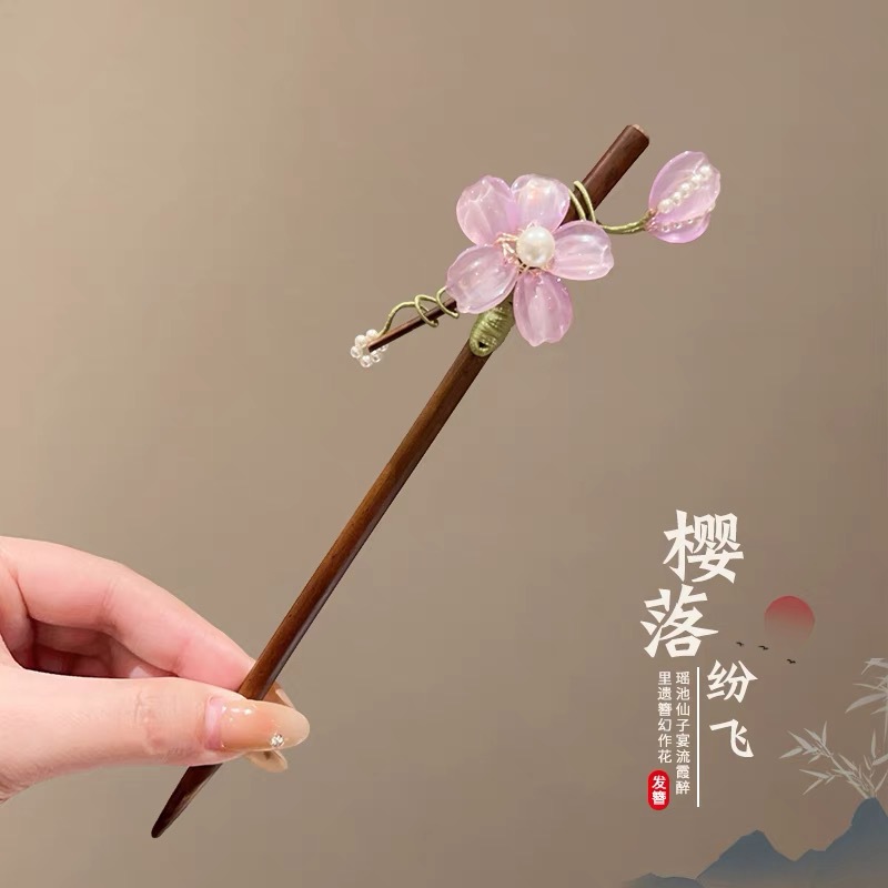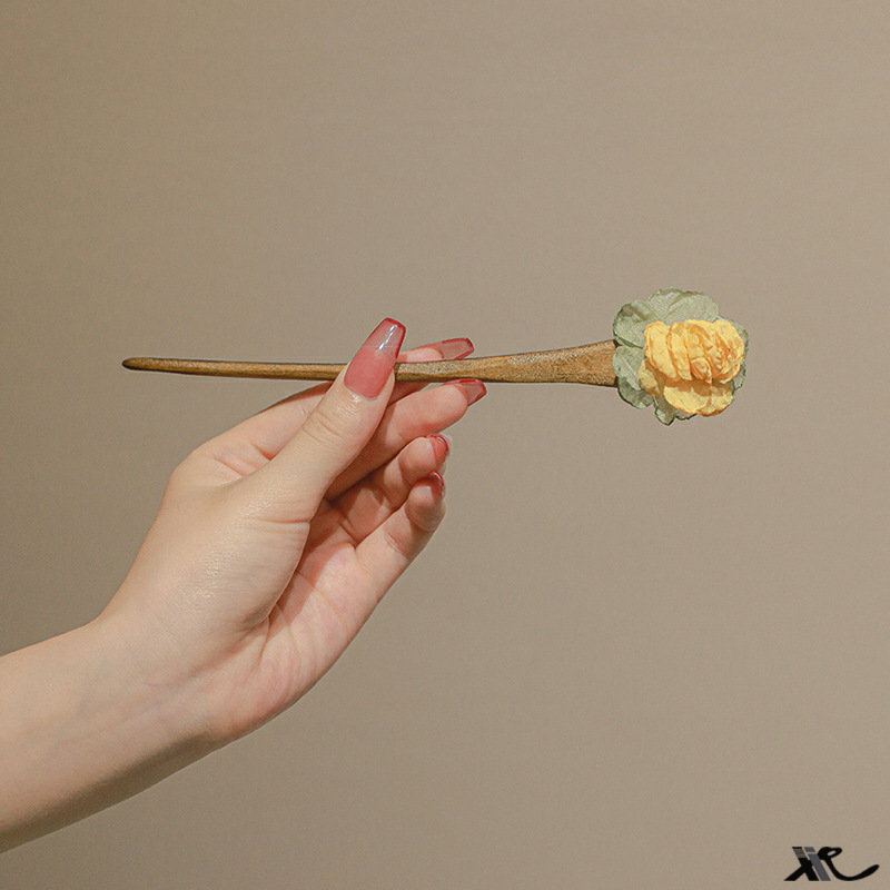 干枯花朵发簪高级感盘发木簪子女古风汉服头饰国风步摇发钗