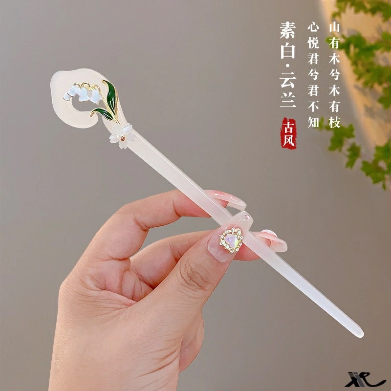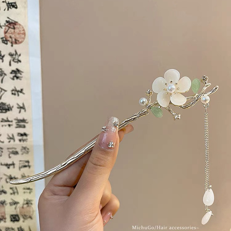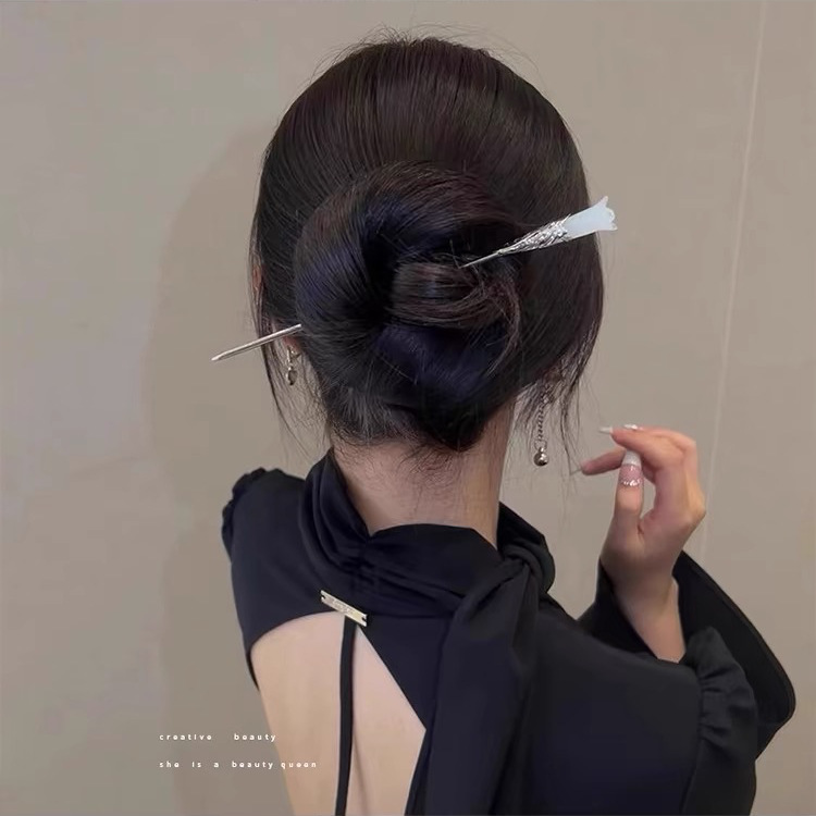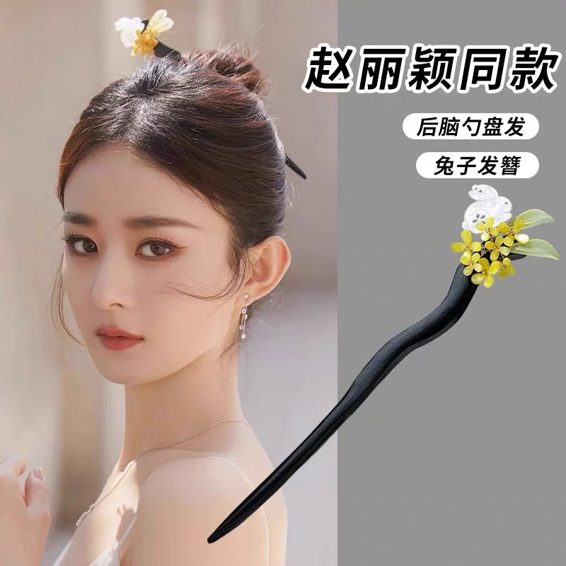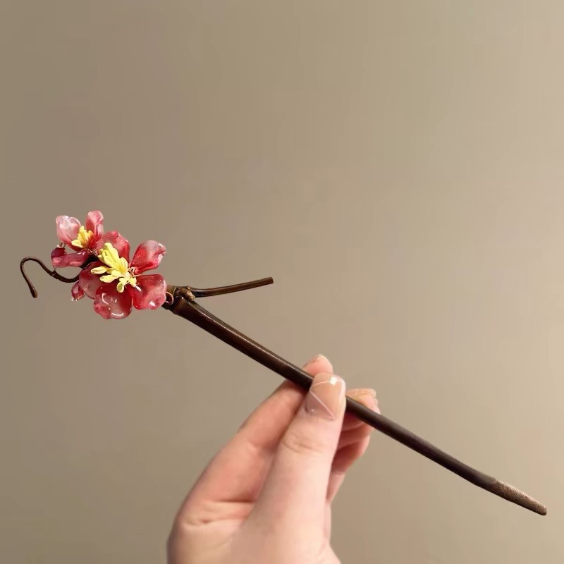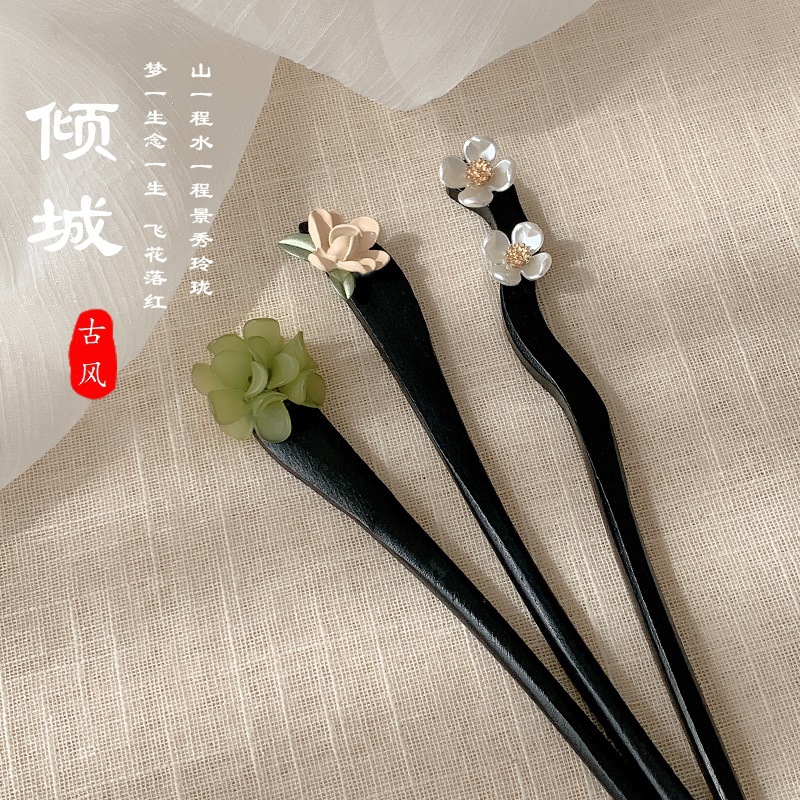干枯花朵发簪高级感盘发木簪子女古风汉服头饰国风步摇发钗