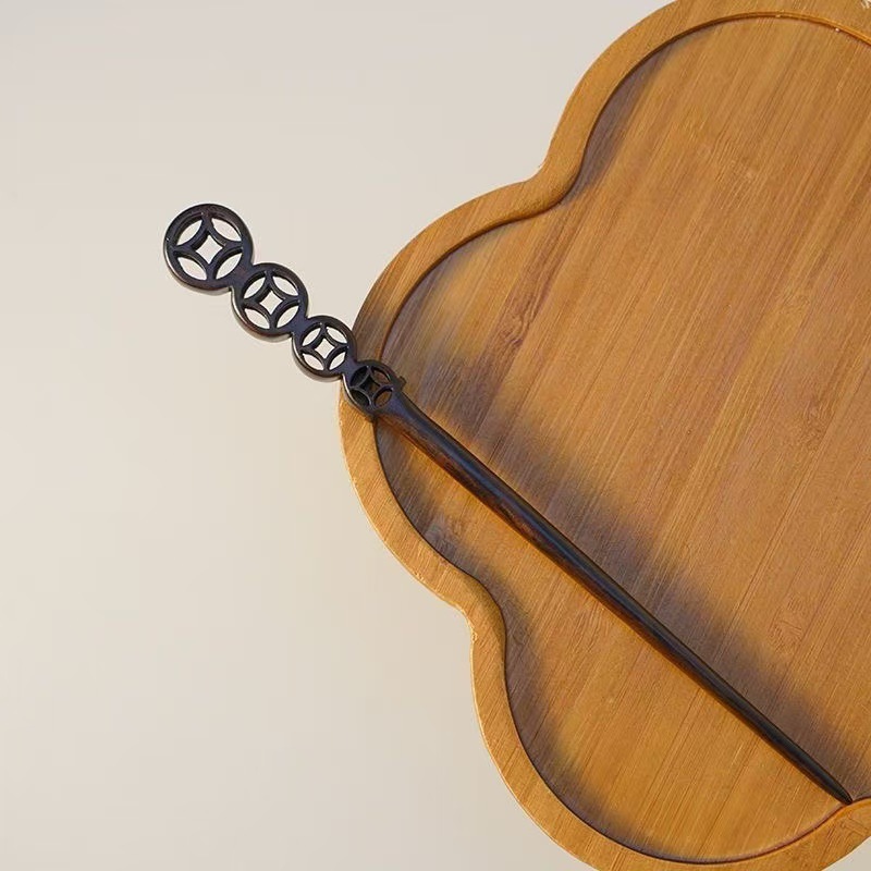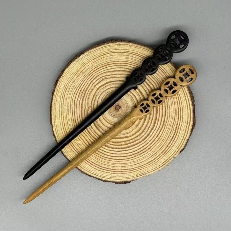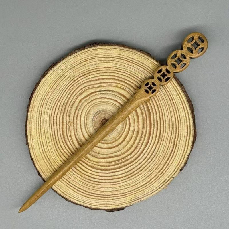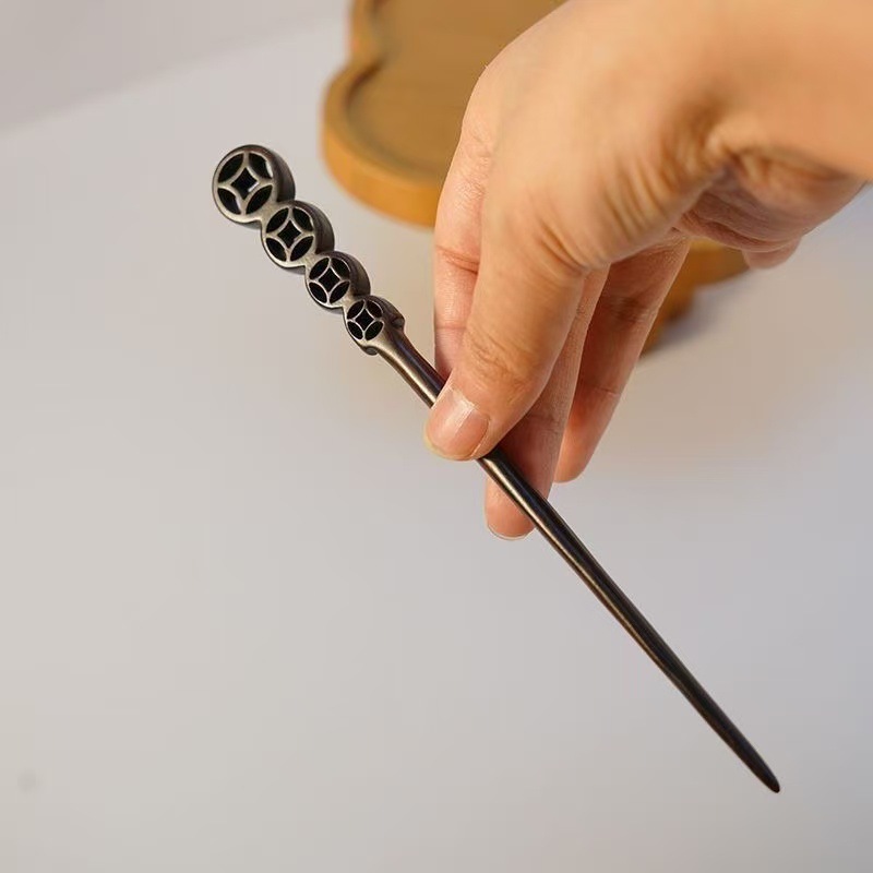 一雪有钱铜钱发簪发饰檀木中式高级古风簪子盘发