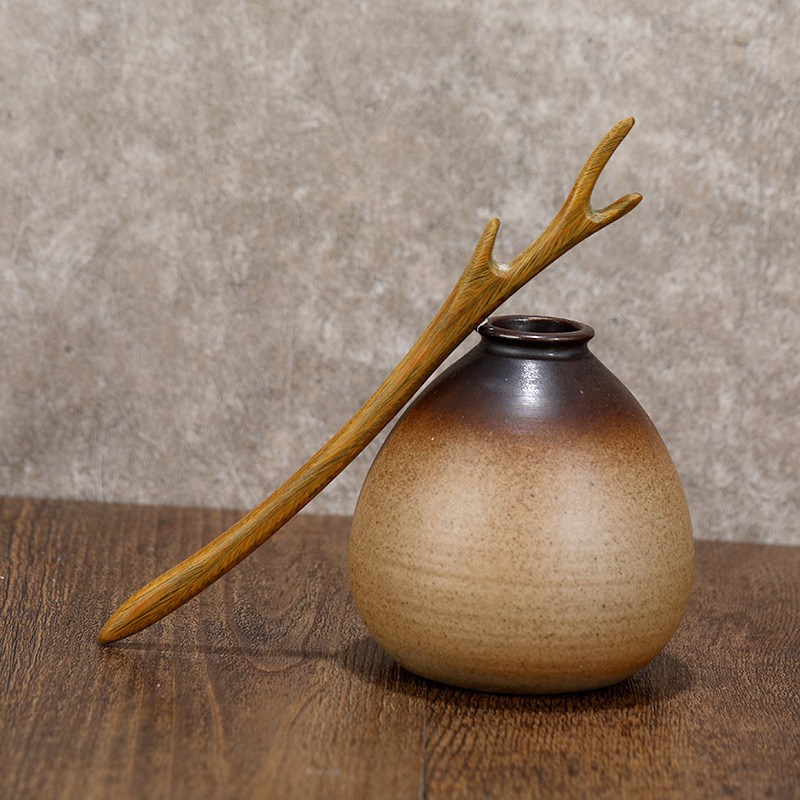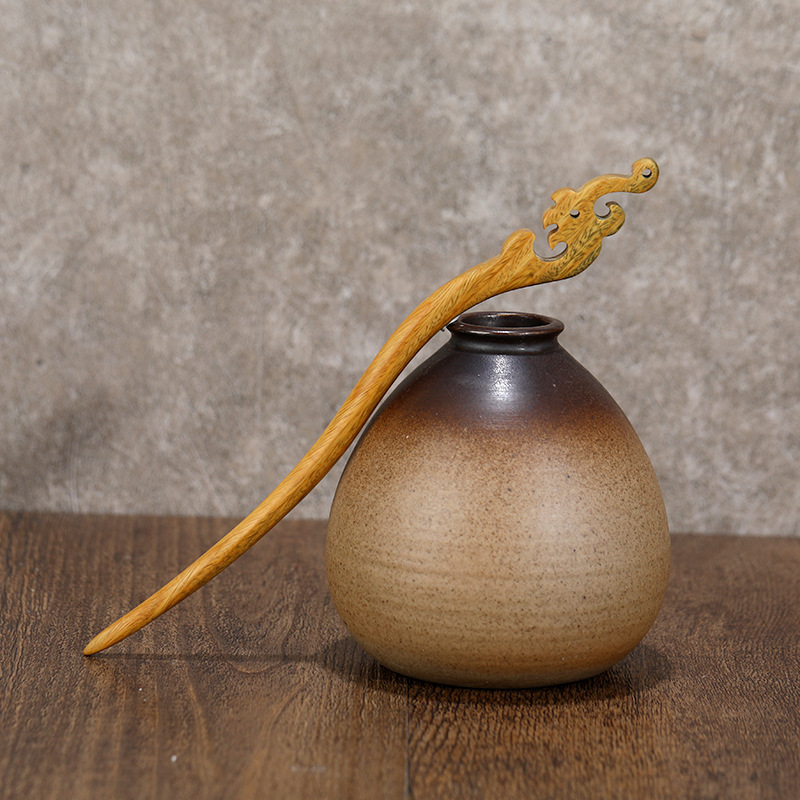 手工绿檀木发簪日常挽发头饰发饰 简约木质盘发簪子