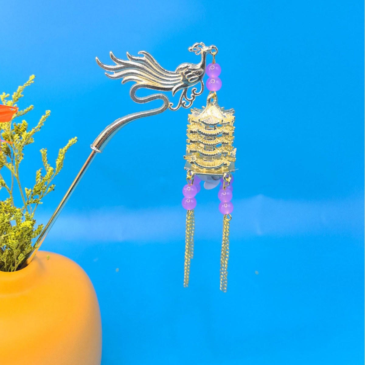 中国风宫灯流苏发簪女高级感步摇簪子古风汉服旗袍