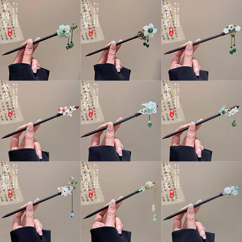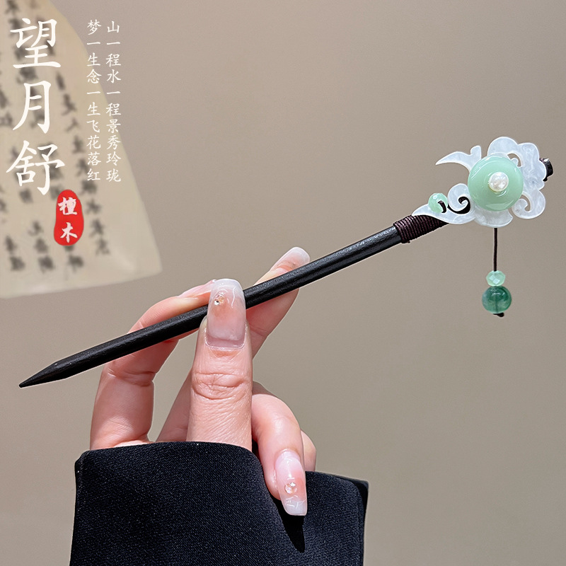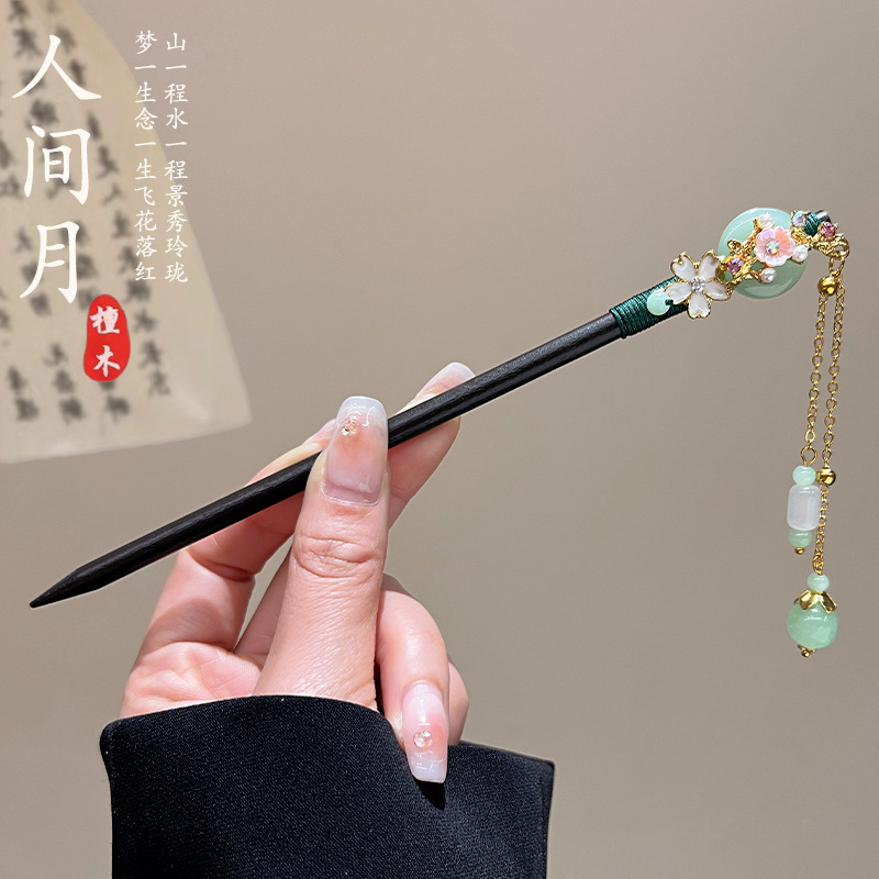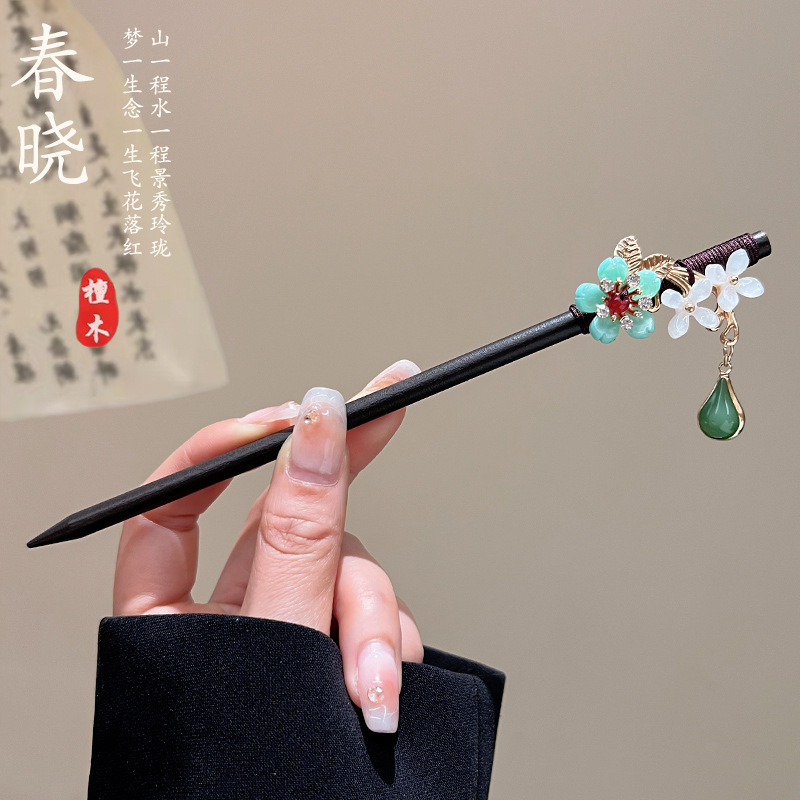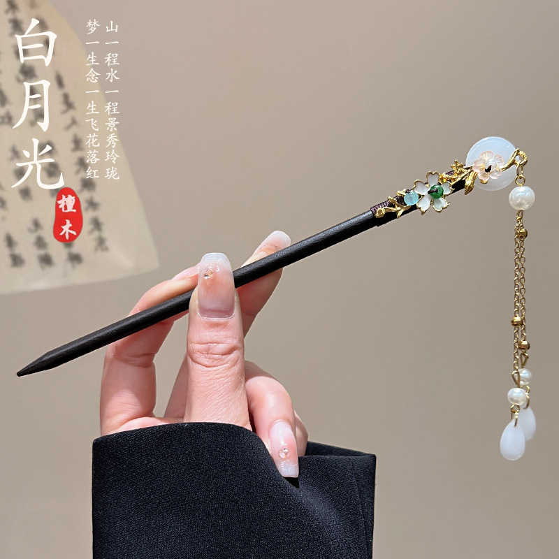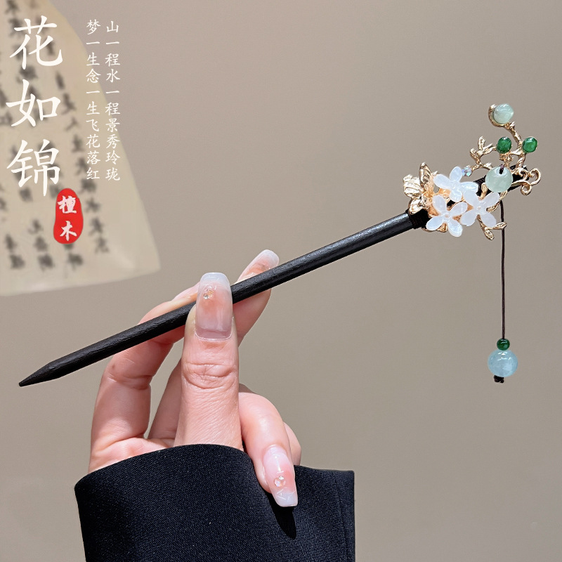 古风高级感流苏发簪黑檀木盘发簪子新中式汉服马面裙配饰