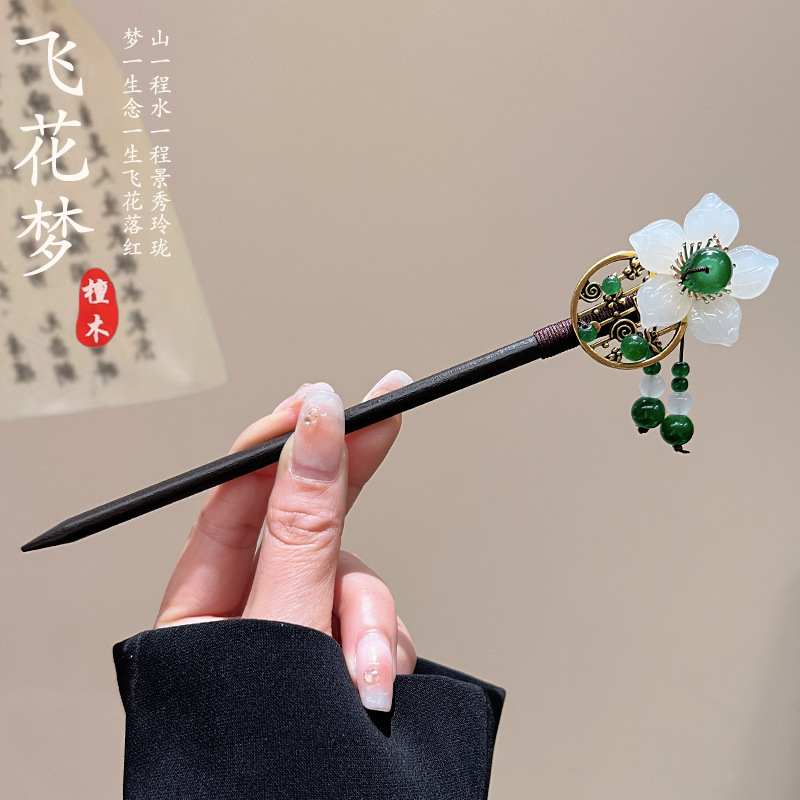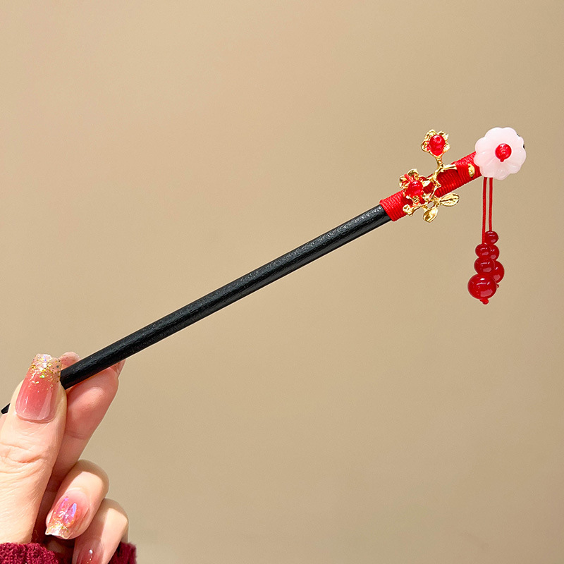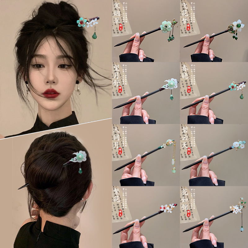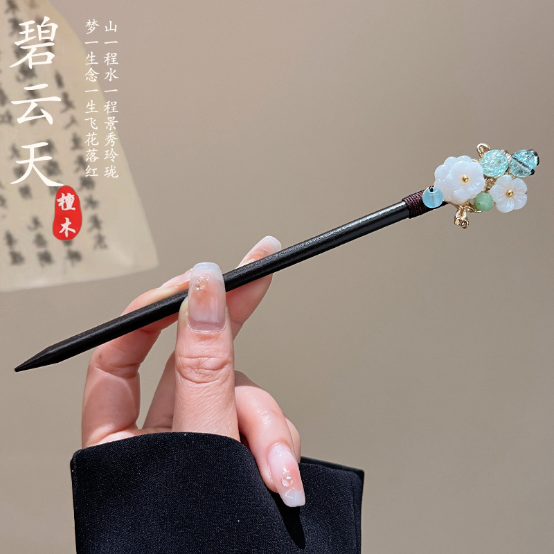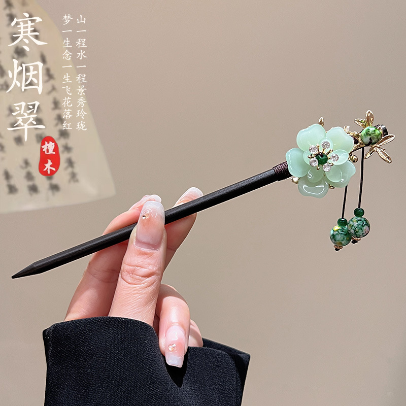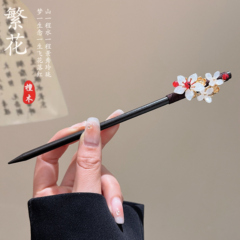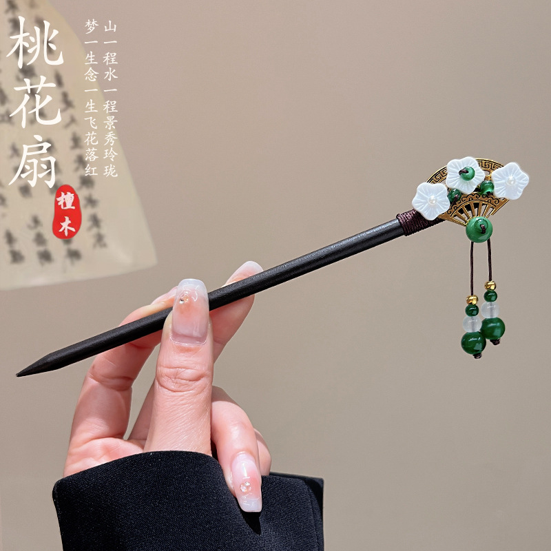 古风高级感流苏发簪黑檀木盘发簪子新中式汉服马面裙配饰