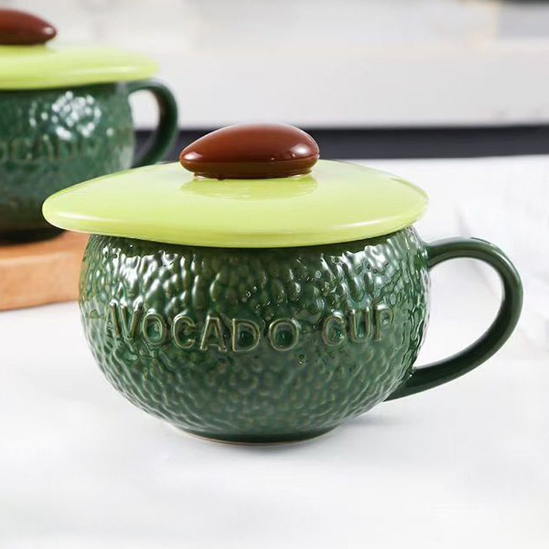 陶瓷泡面杯带盖家用办公食堂餐厅高颜值南瓜牛油果燕麦片方便面碗