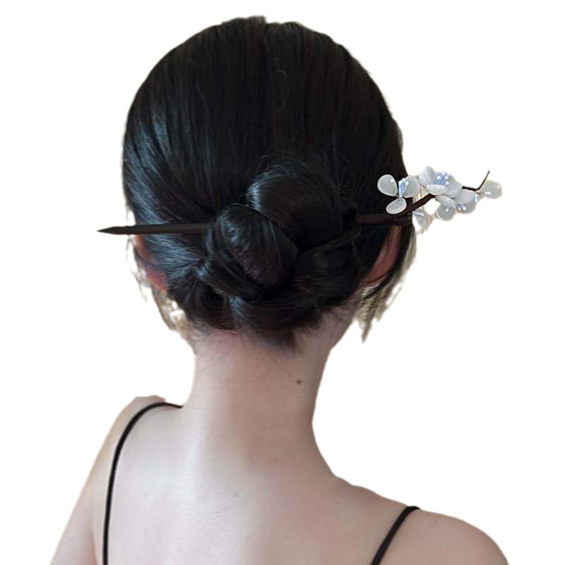 一枝梨花白清冷复古花朵木质发簪超仙古风气质盘发发簪