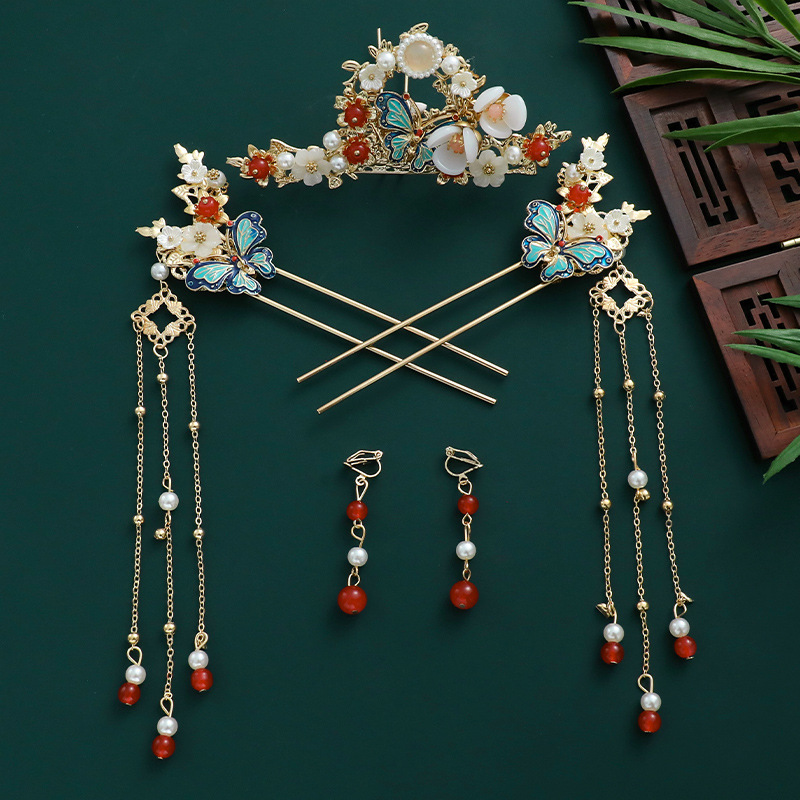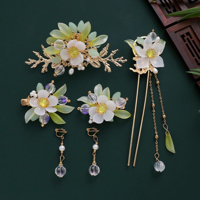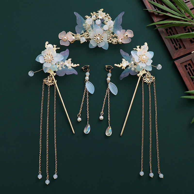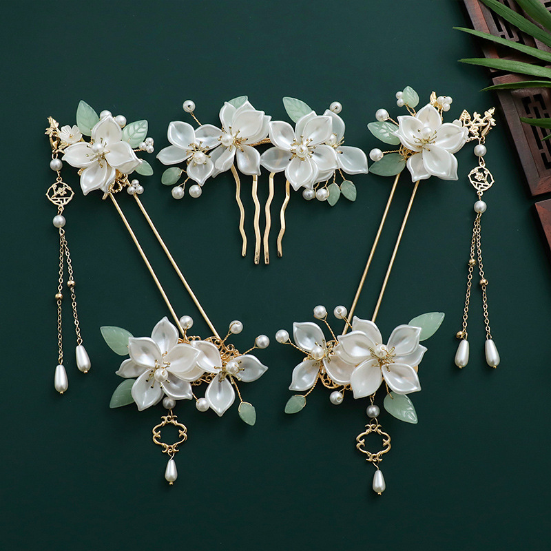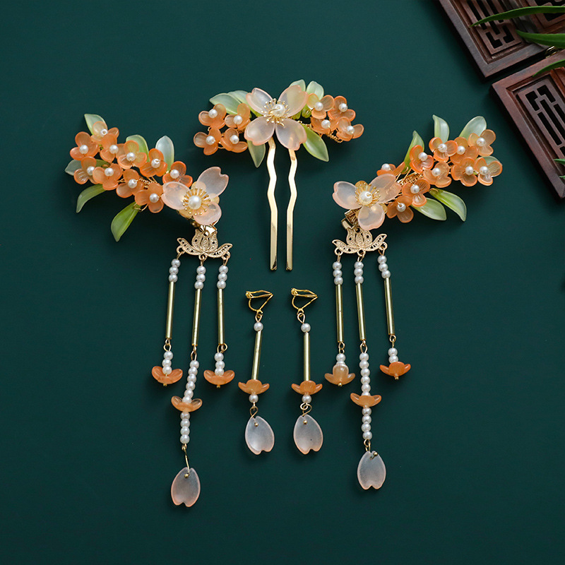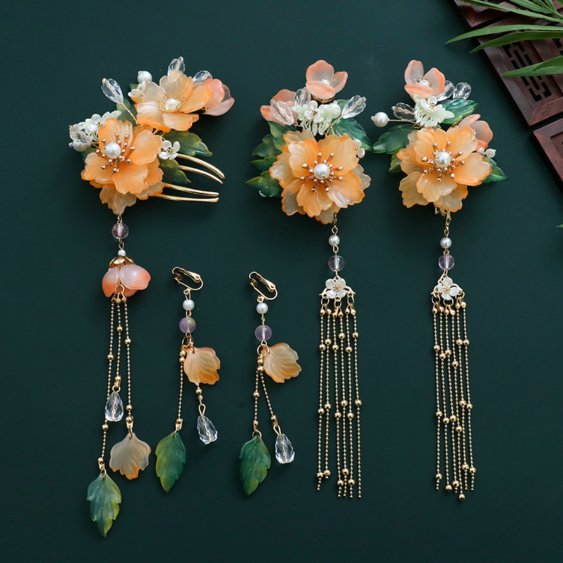 古风发簪儿童汉服发钗耳夹头饰牡丹花朵流苏发梳女孩古装发饰组合
