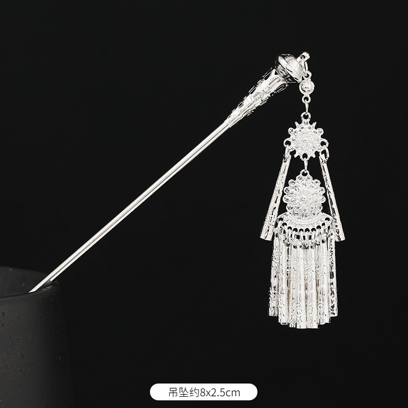 手工苗银发簪民族风女复古步摇流苏簪子发钗古风舞台头饰