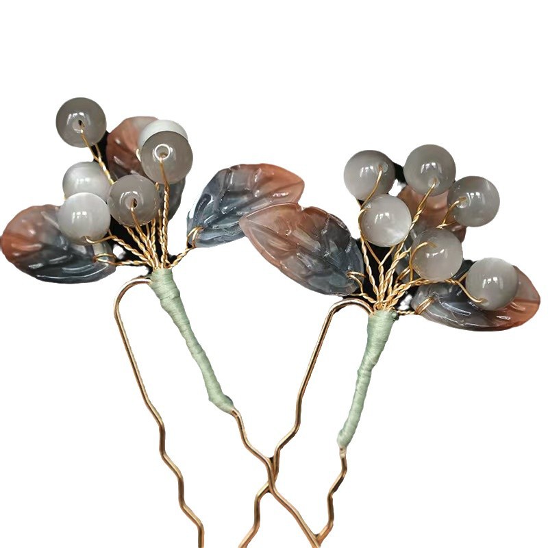 古风发钗汉服头饰发饰侧边掩鬓点缀琉璃简约簪子U形钗古典配饰品