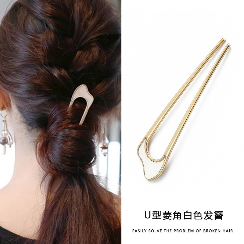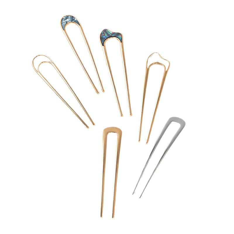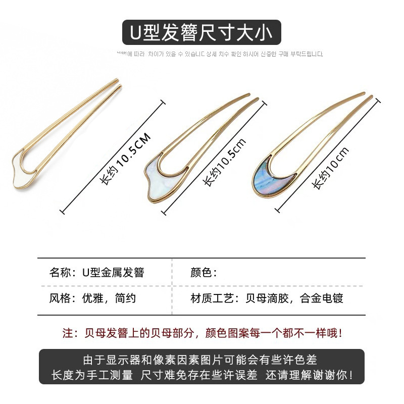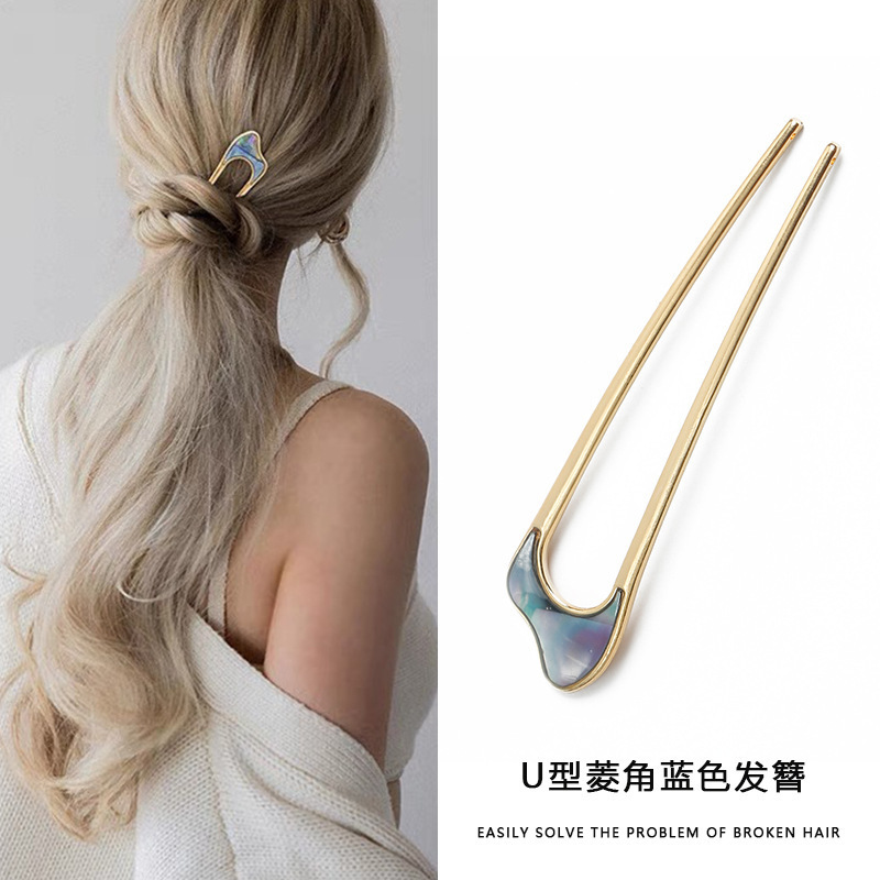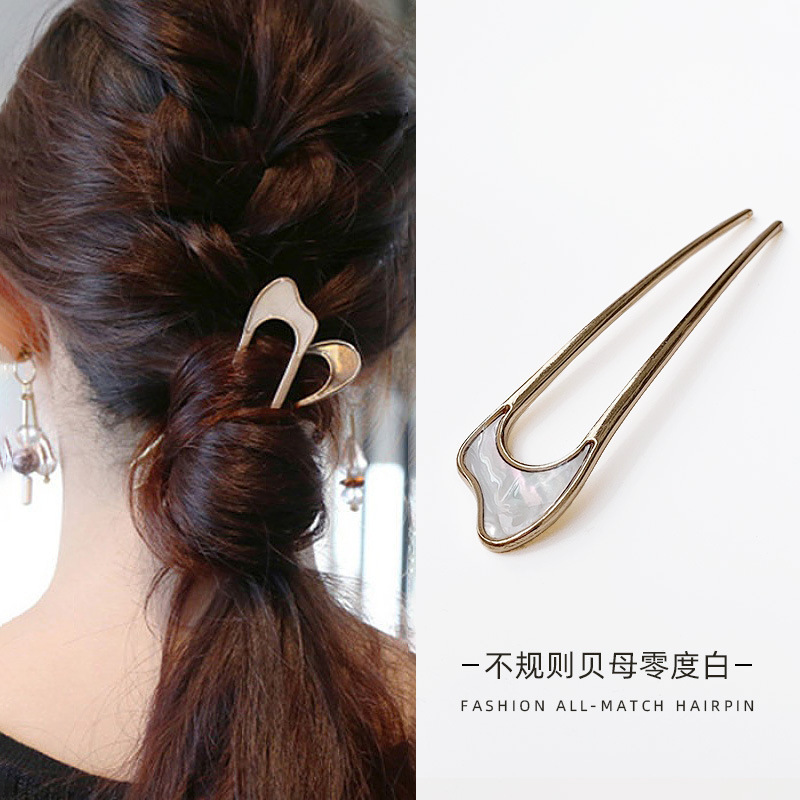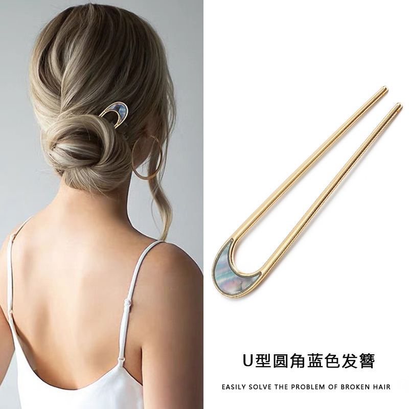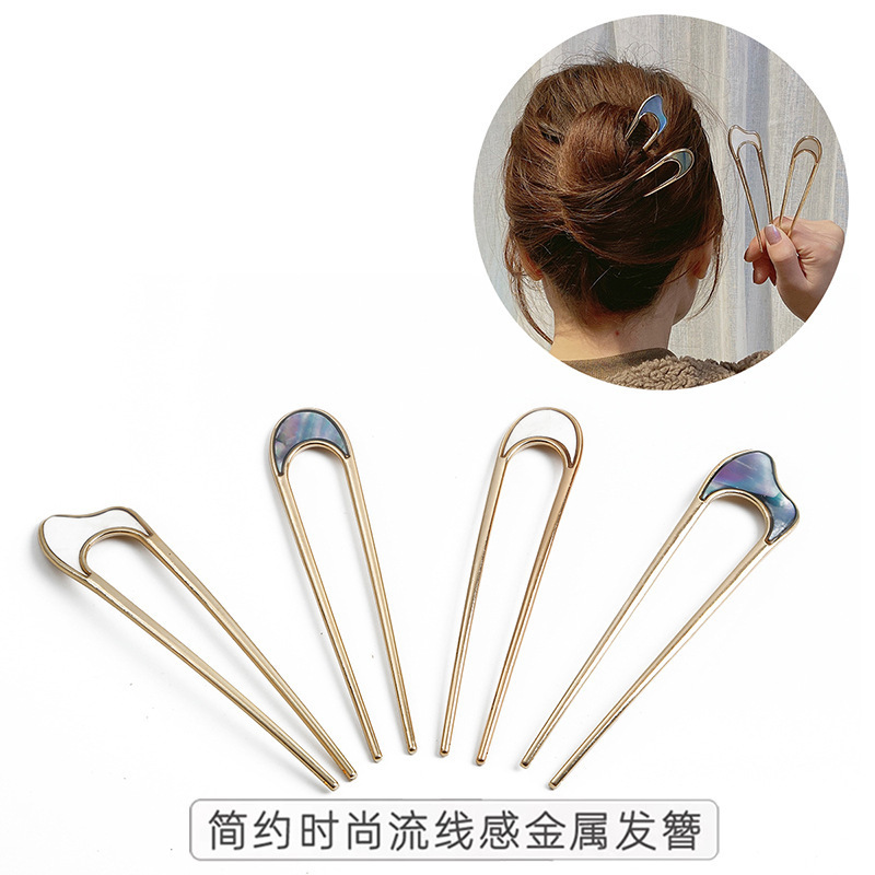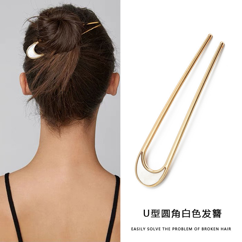 发簪U型发叉贝壳简约现代时尚丸子头盘发插ins卡扣合金