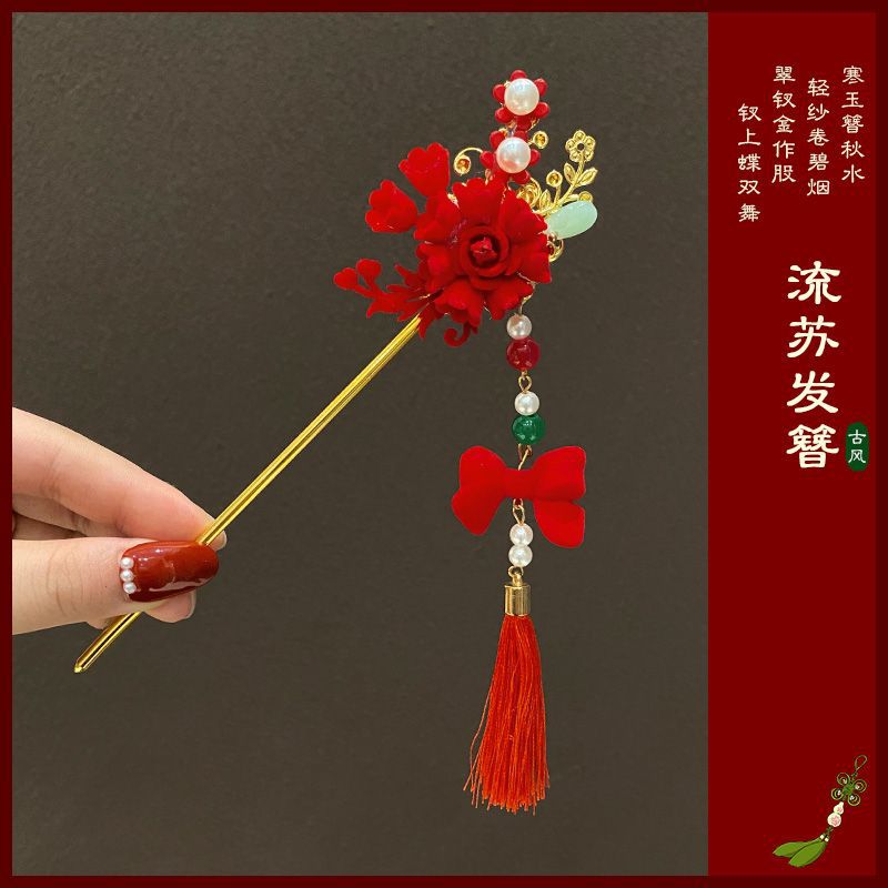 新年儿童古风流苏发簪超仙花朵簪子女孩发饰步摇发钗女汉服头饰品