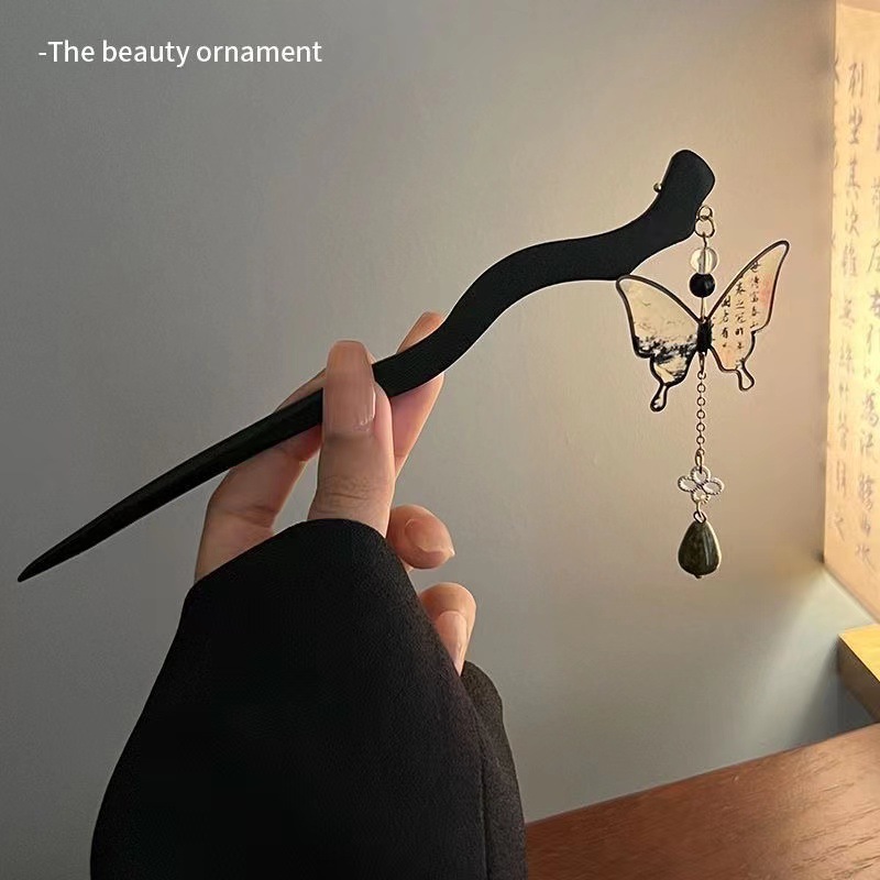 水墨蝴蝶流苏发簪
