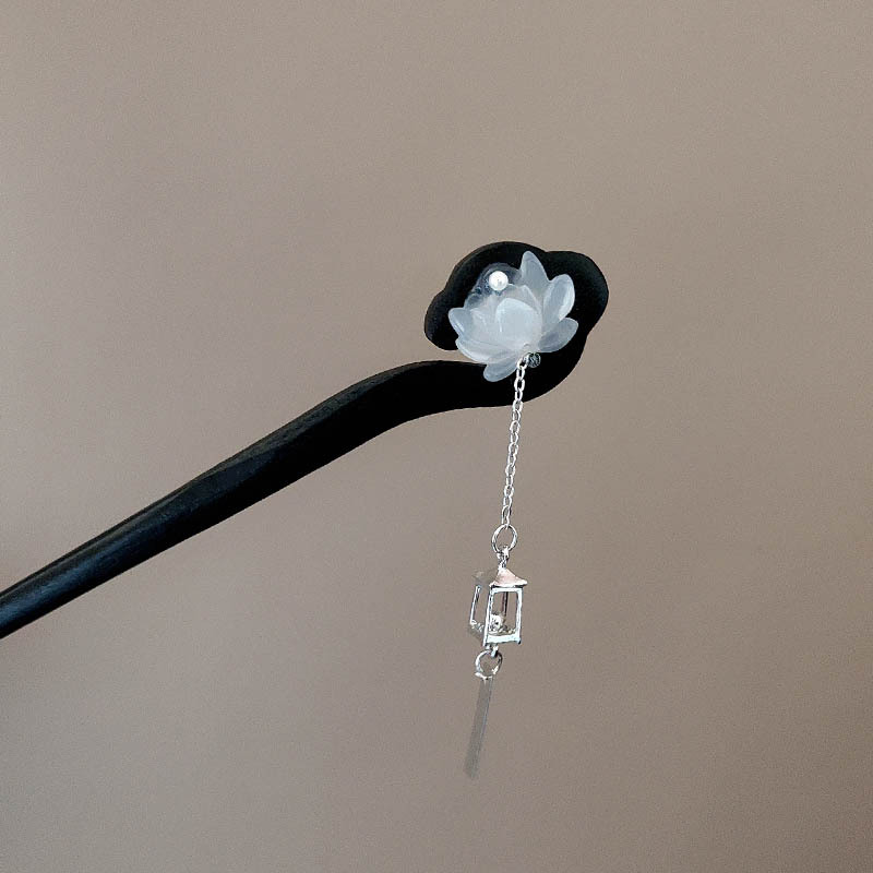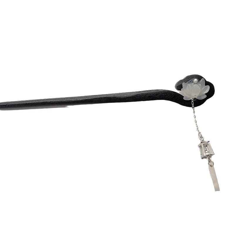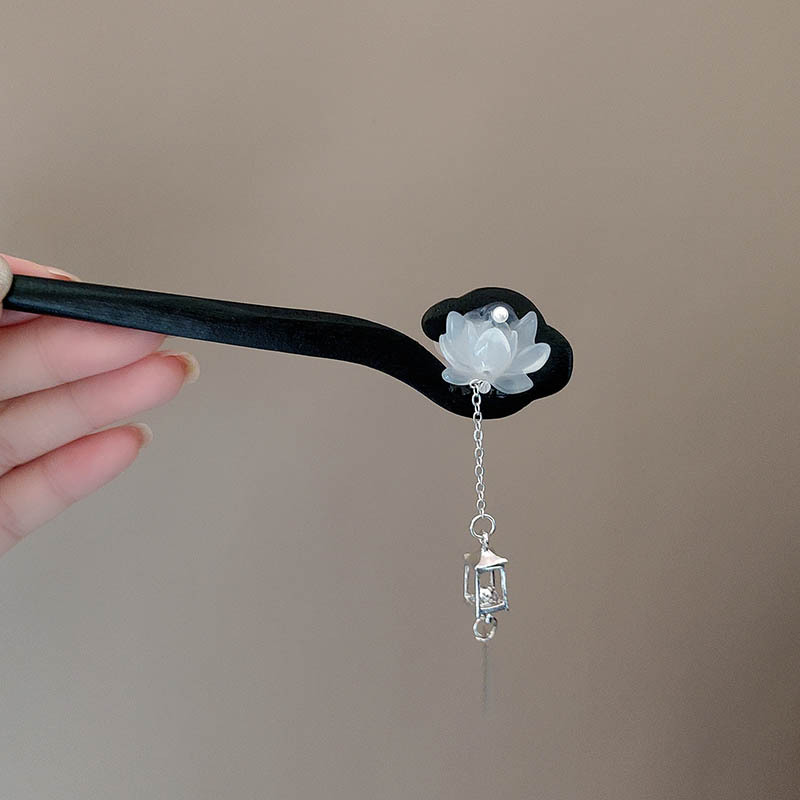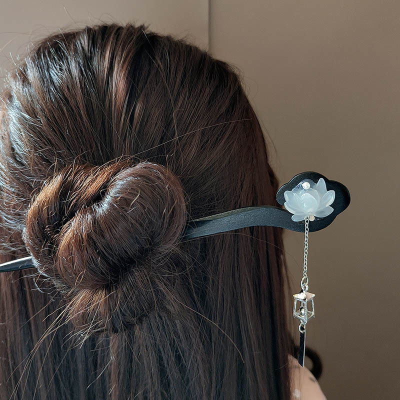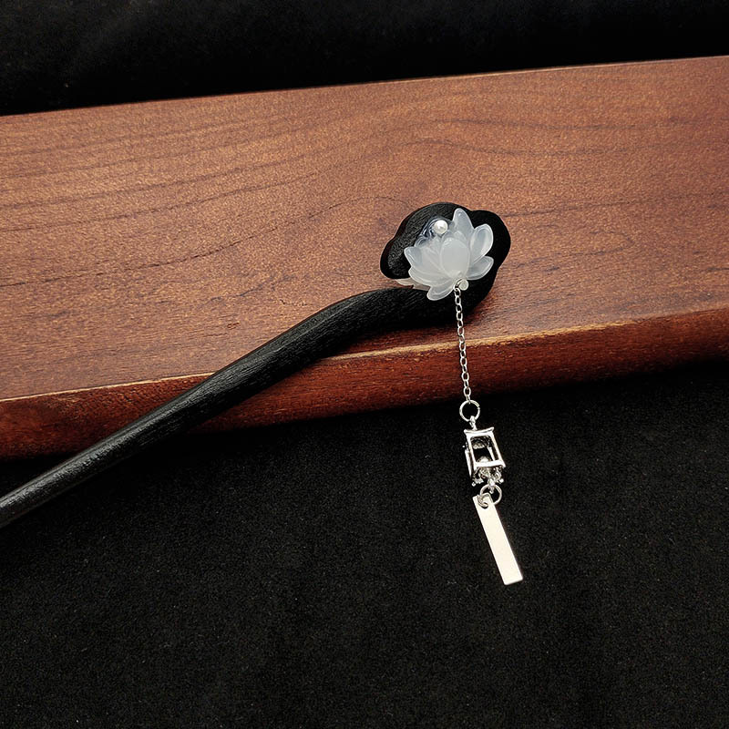 古风双面莲花木质发簪小众新中式盘发簪子高级清冷感复古发钗头饰