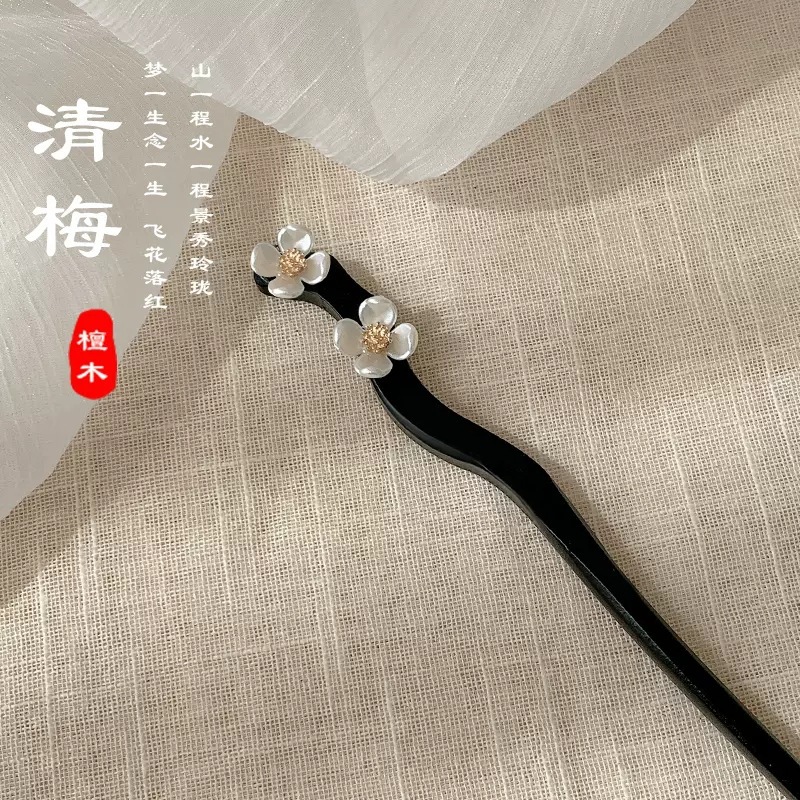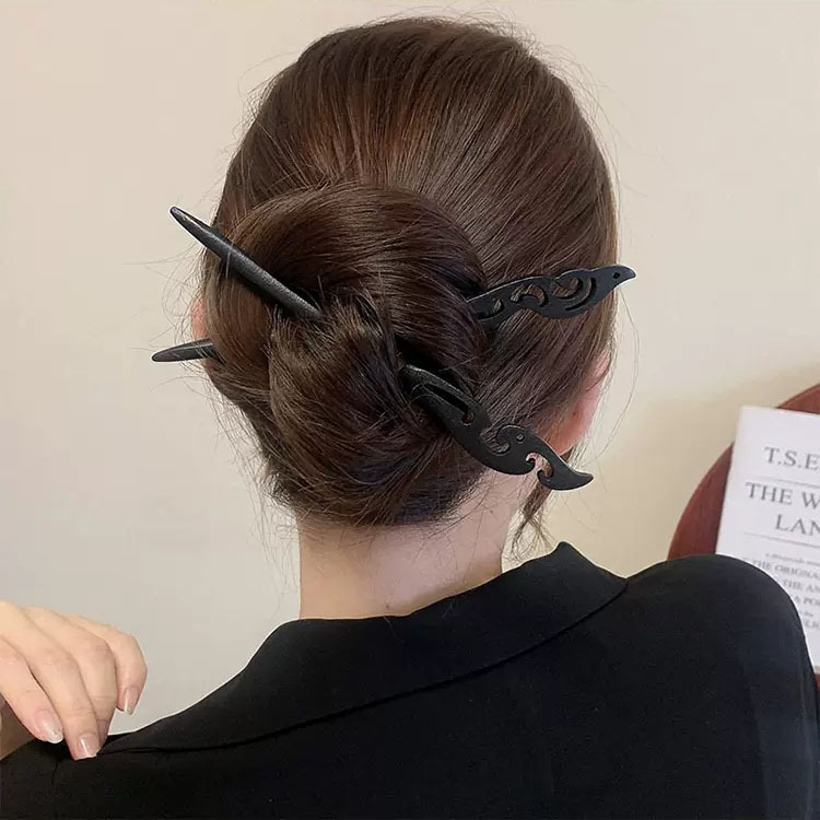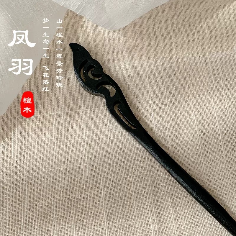 古风木质发簪女黑色檀木高级感簪子新中式设计感高马尾盘发发饰潮