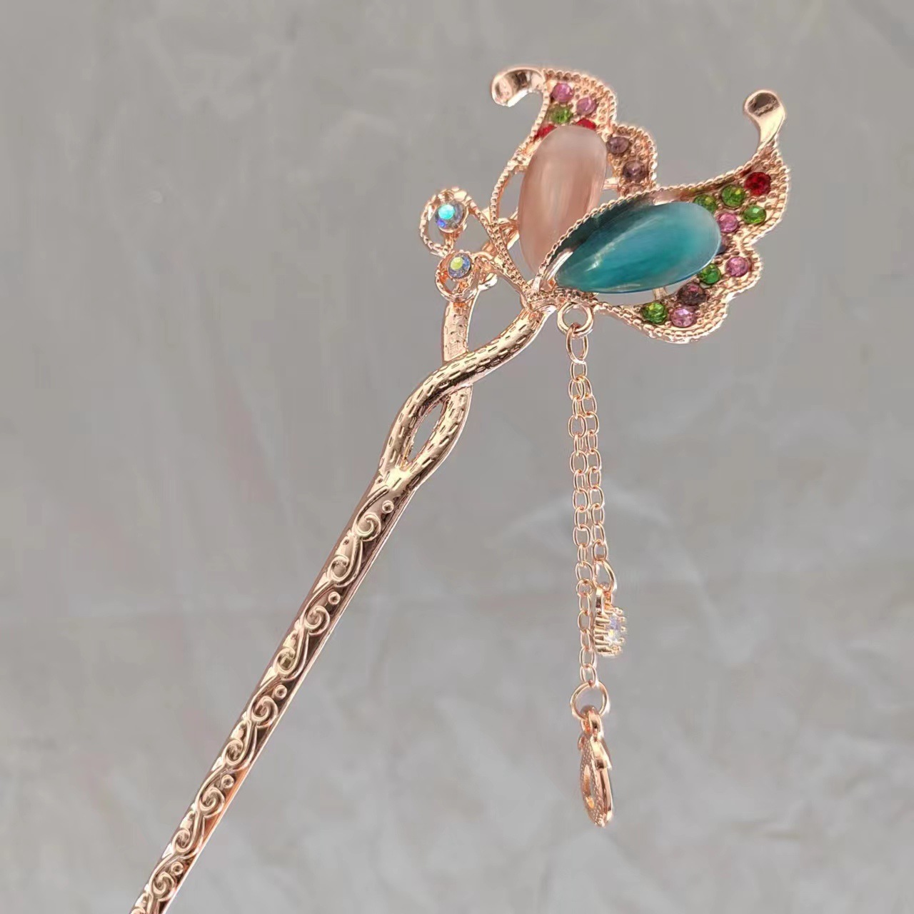 发簪高级感新中式猫眼石簪子复古轻奢后脑勺头饰步摇流苏汉服百搭