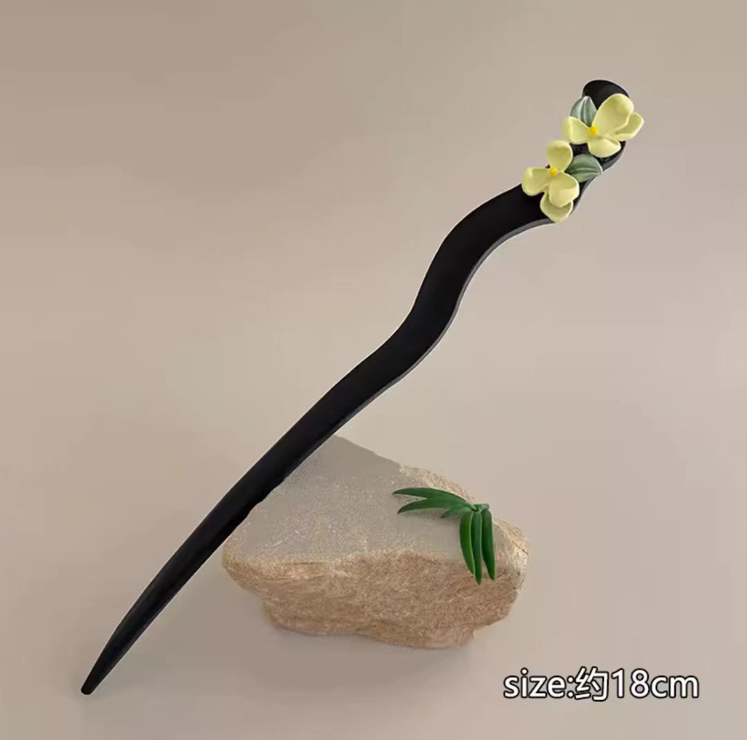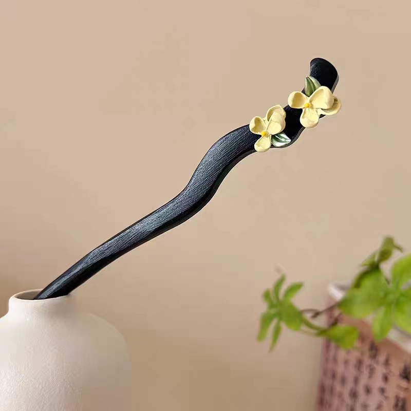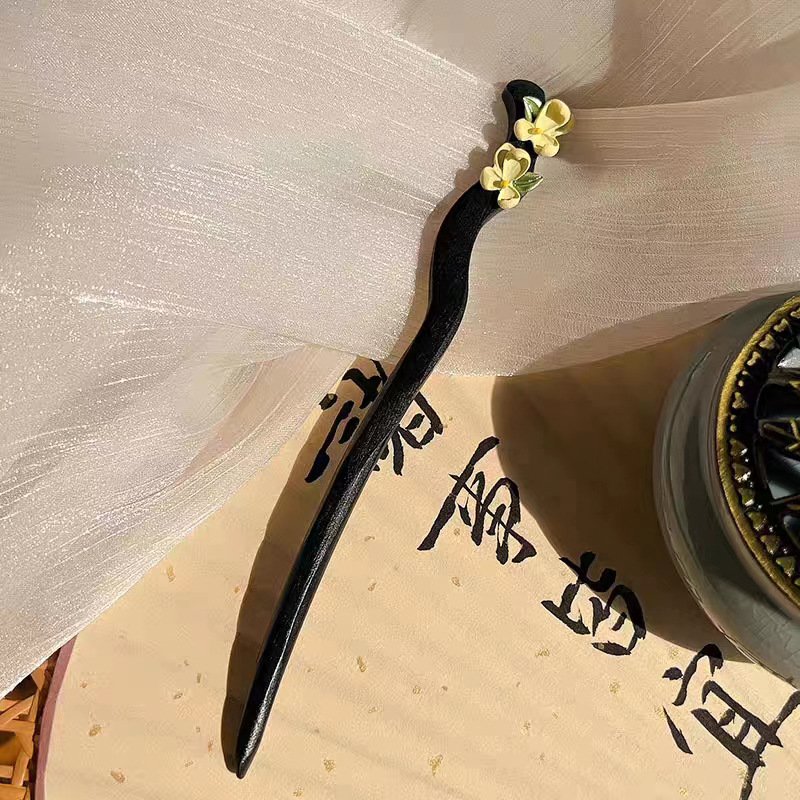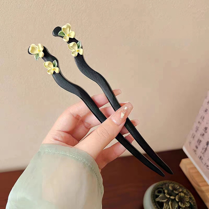 新中式木簪发钗茉莉栀子花古风汉服发簪盘发簪子实木国风高级简约