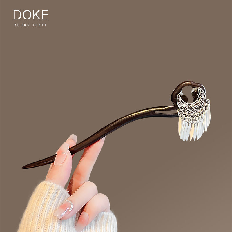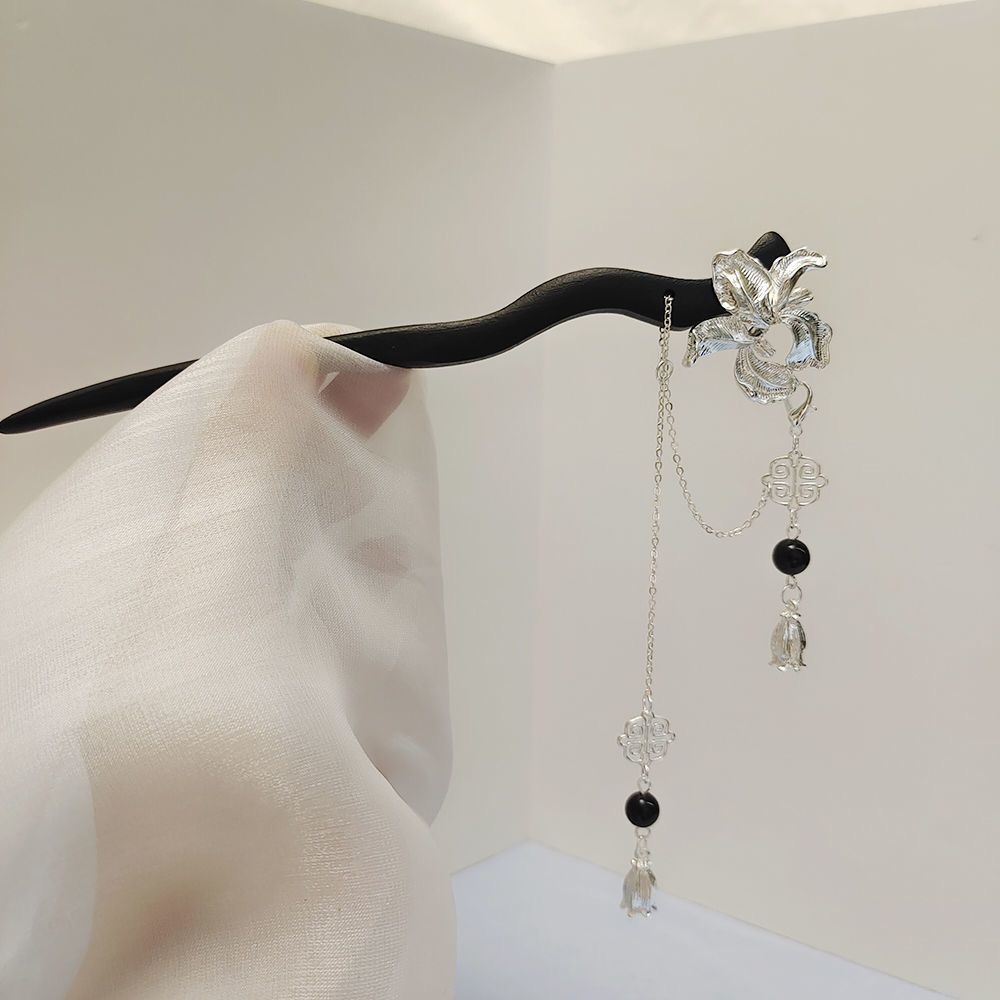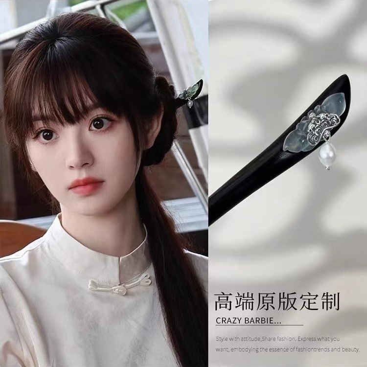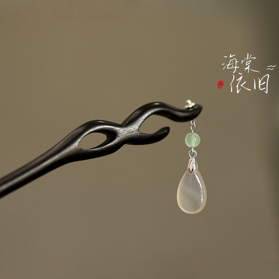 原创设计黑檀木簪子女式发饰古风简约新中式风格流苏高级盘发发簪