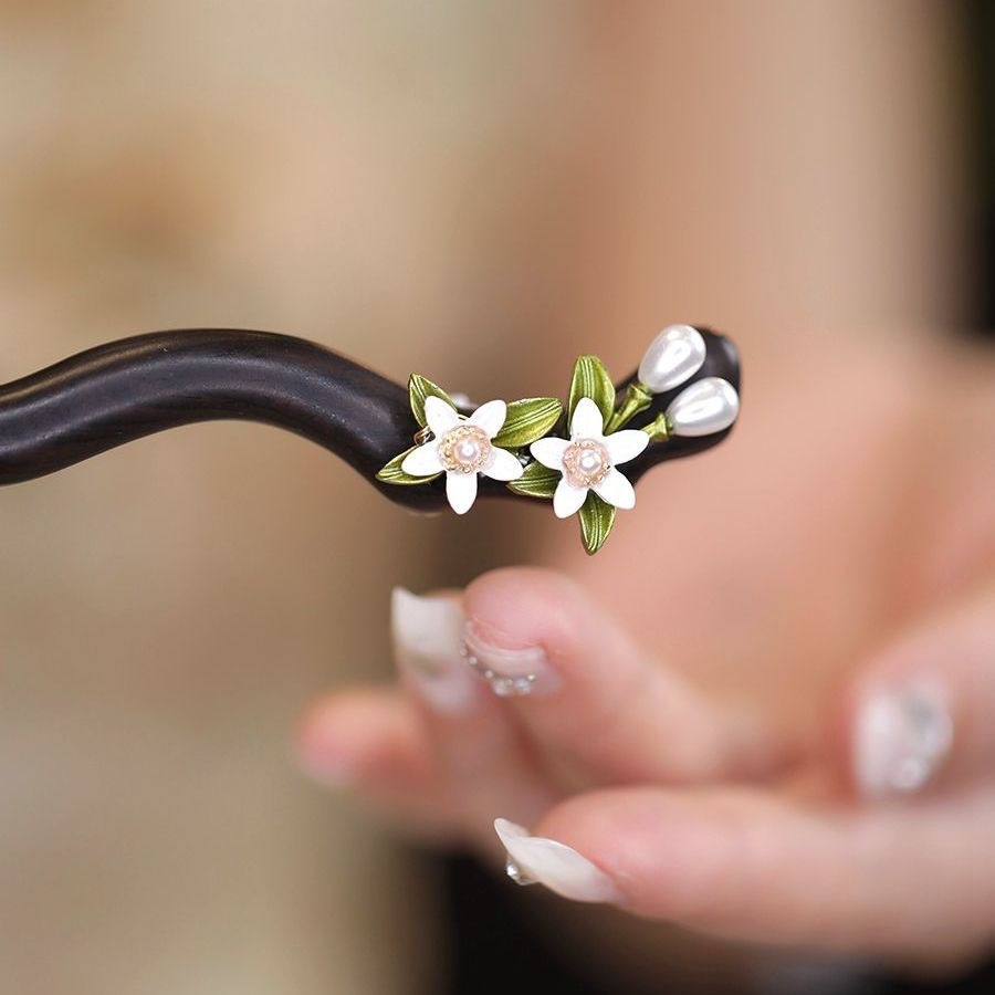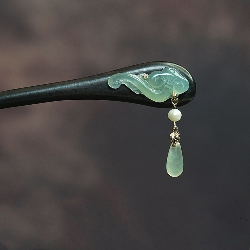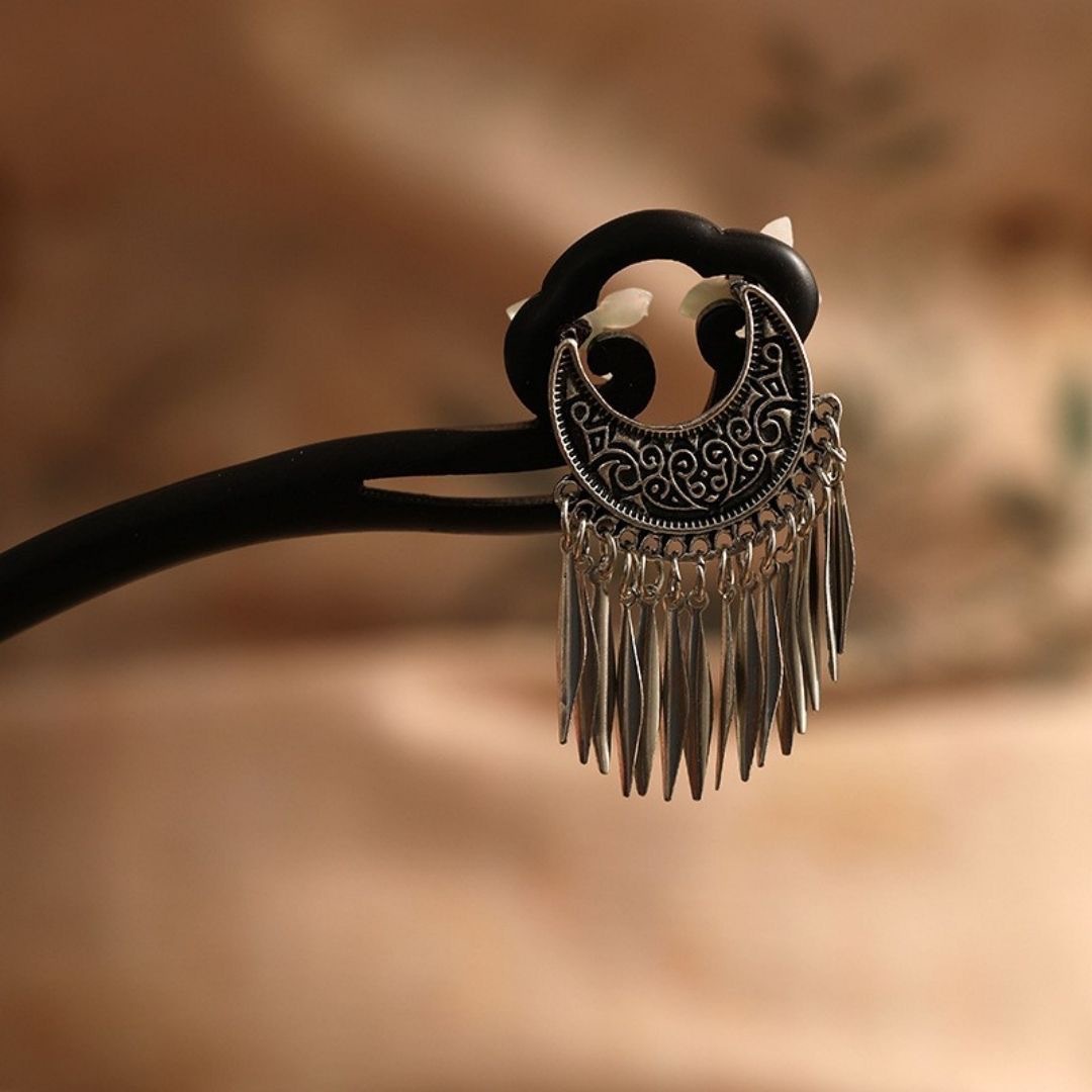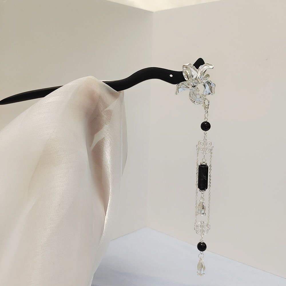 原创设计黑檀木簪子女式发饰古风简约新中式风格流苏高级盘发发簪