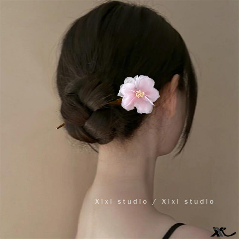 紫色玫瑰花木簪夏季发簪网纱花朵发钗古风簪花头饰气质发饰配饰女