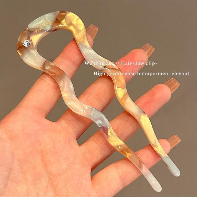 - 【琥珀黄】U形波浪发簪
