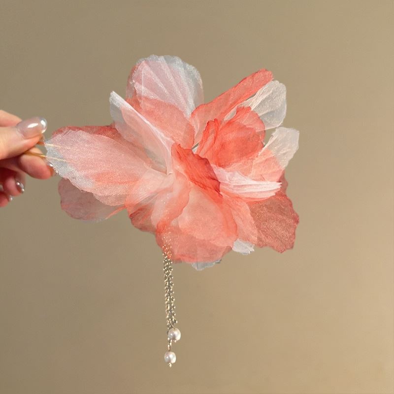 枯叶蝶雪纺花朵珠发簪气质流苏U形发钗新中式高级感盘发簪子仙女