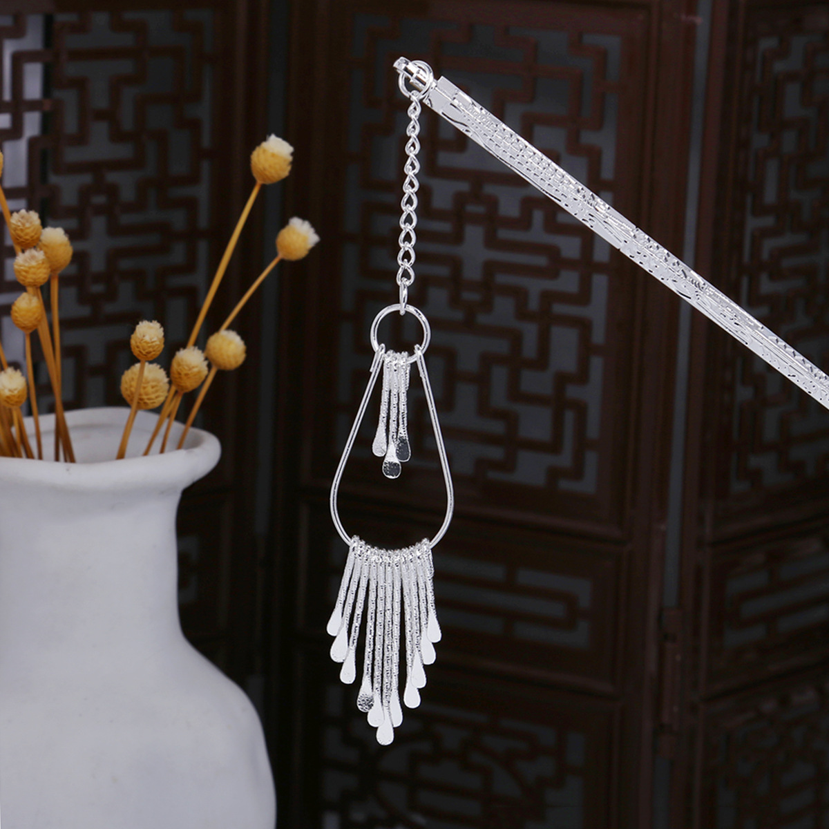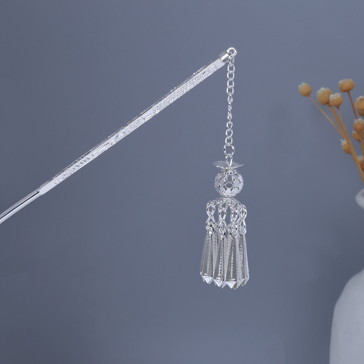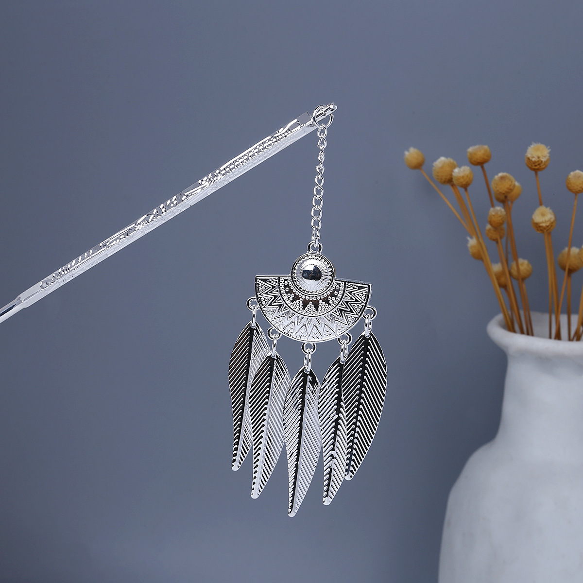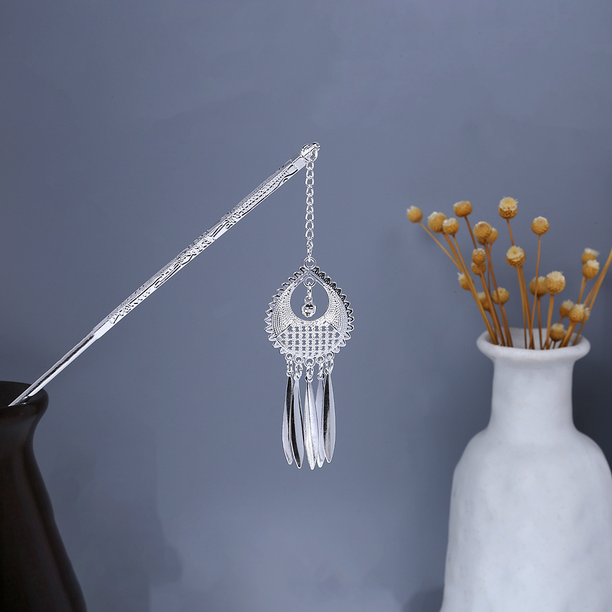 新中式苗银几何镂空步摇流苏发簪 复古孔雀流苏古风旗袍汉服发饰